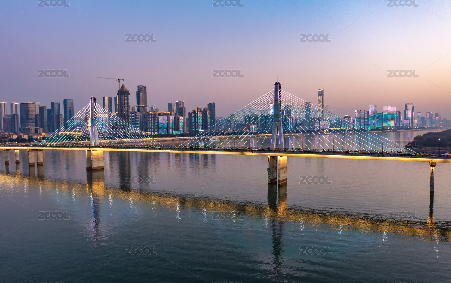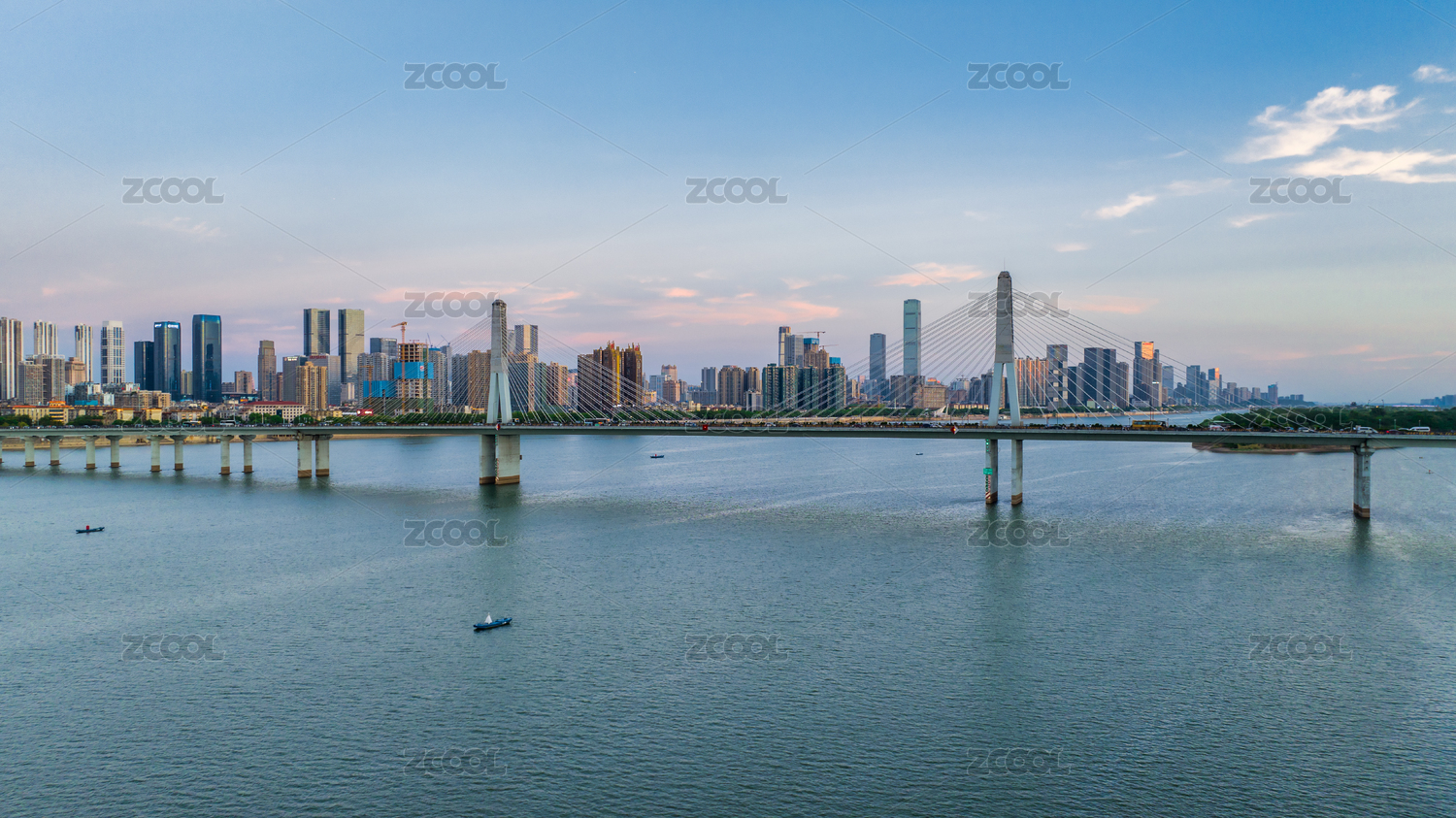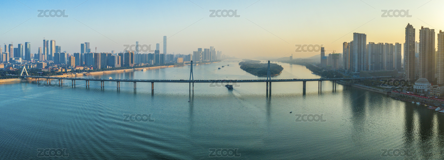傍晚時分的湖南長沙湘江銀盆嶺大橋