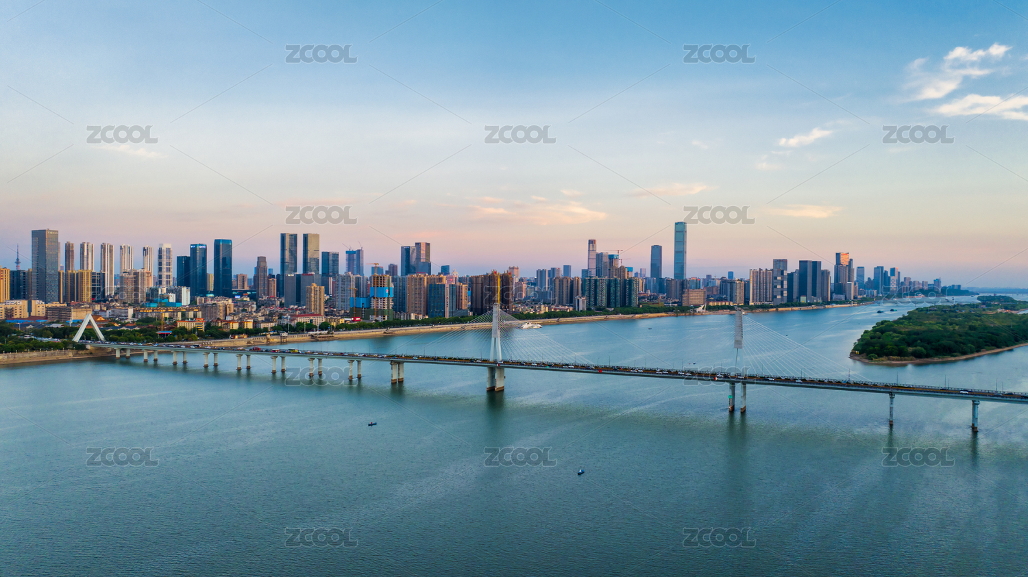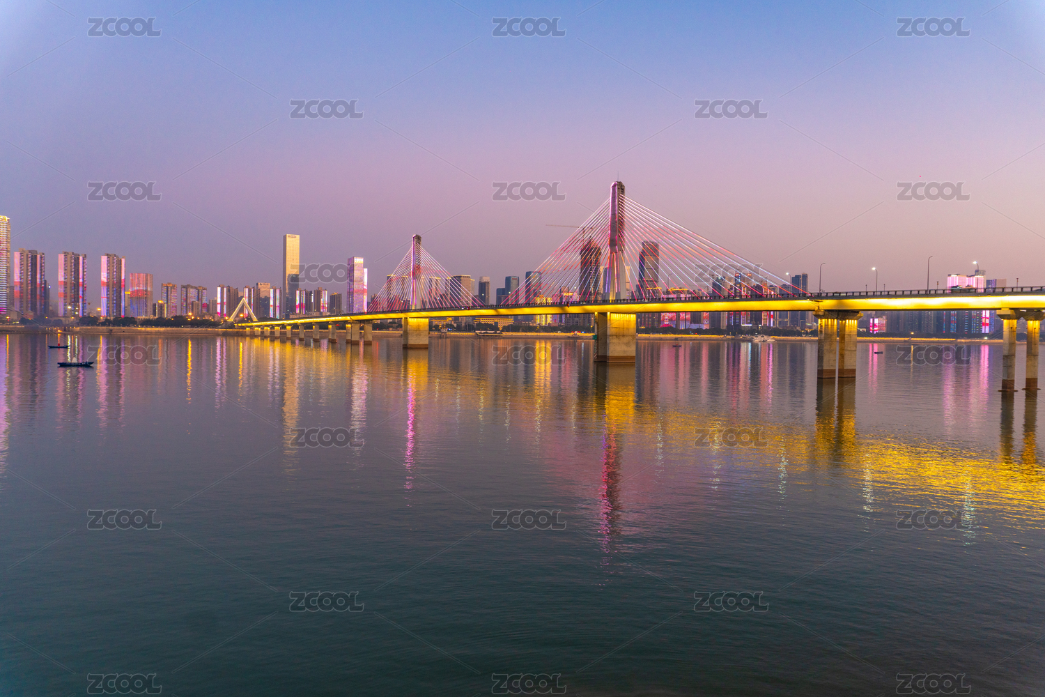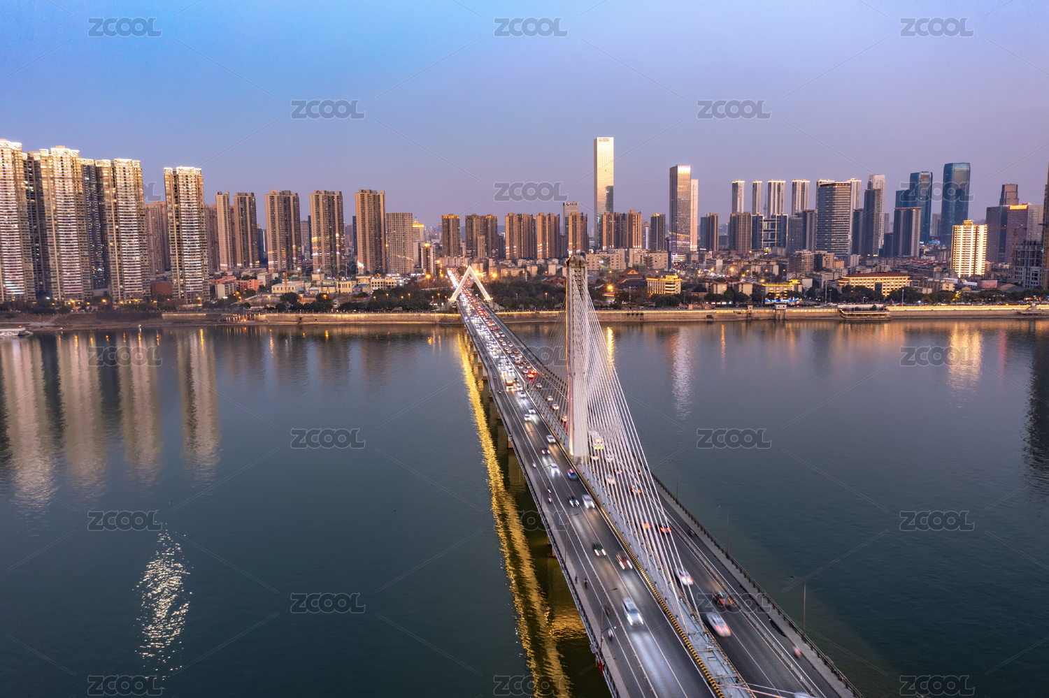 傍晚時分的湖南長沙湘江銀盆嶺大橋
