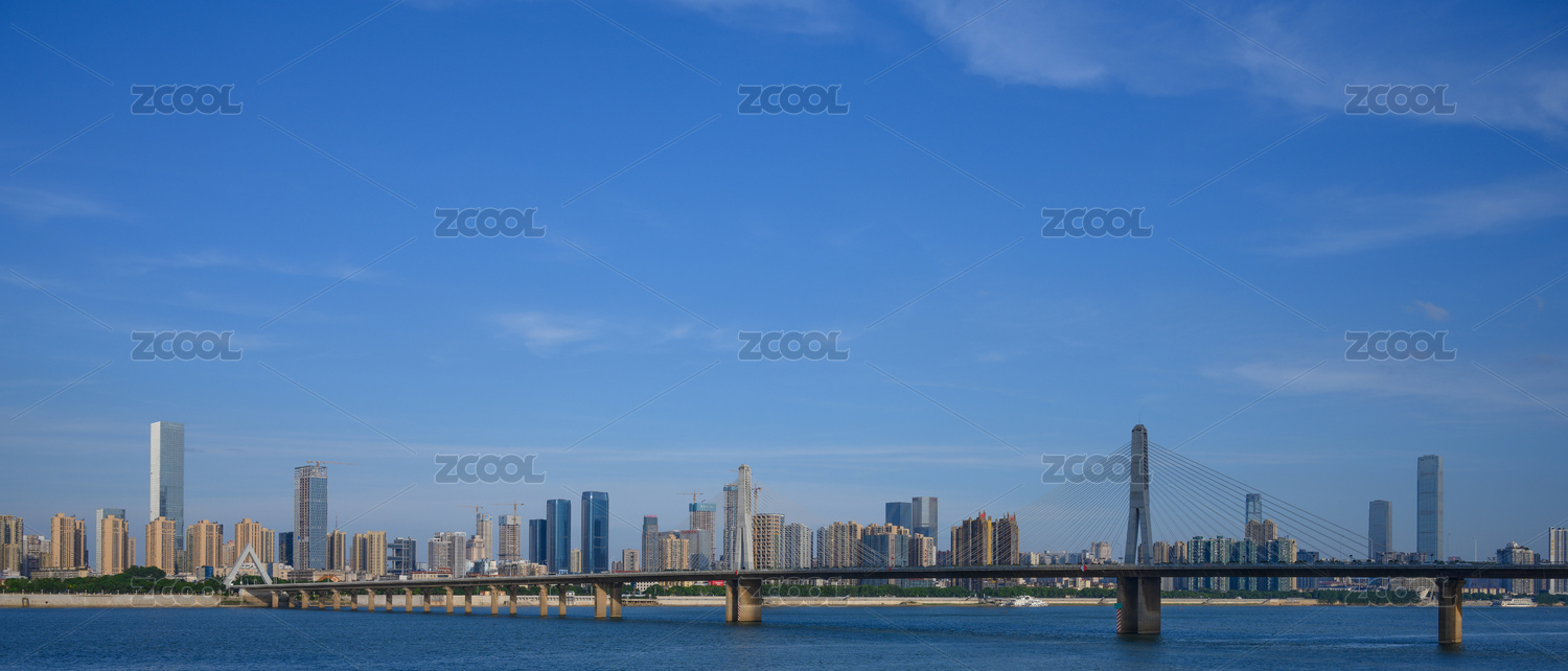 中國湖南長沙銀盆嶺大橋與河東城市天際線