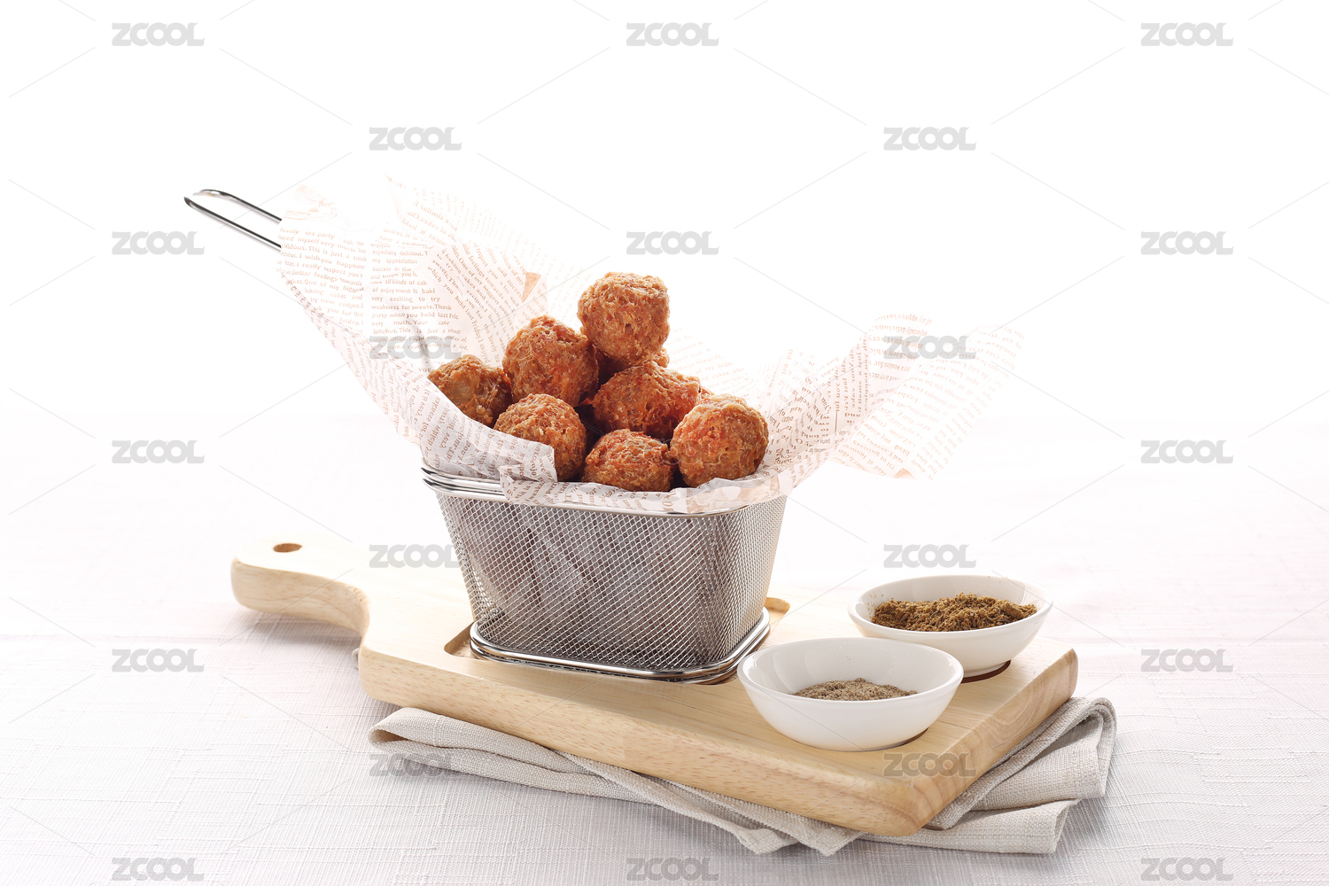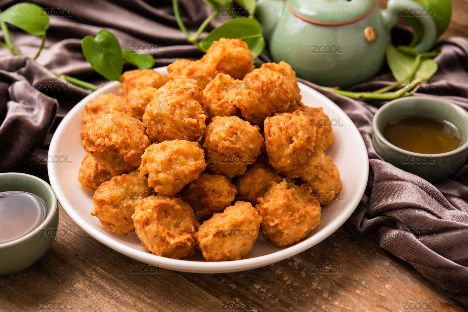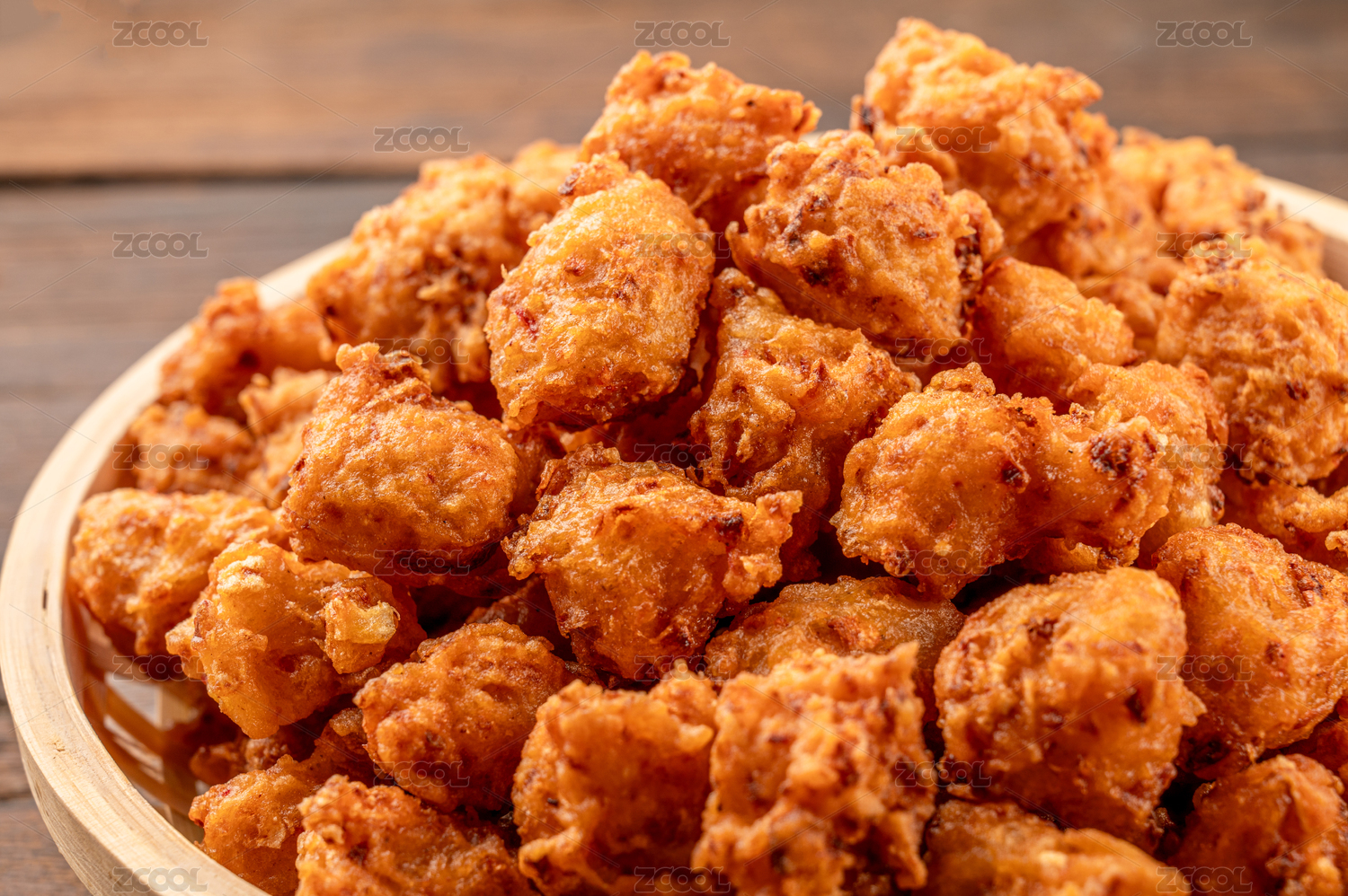 木質(zhì)盤子里的干炸丸子
