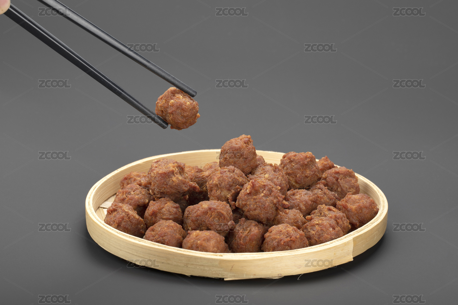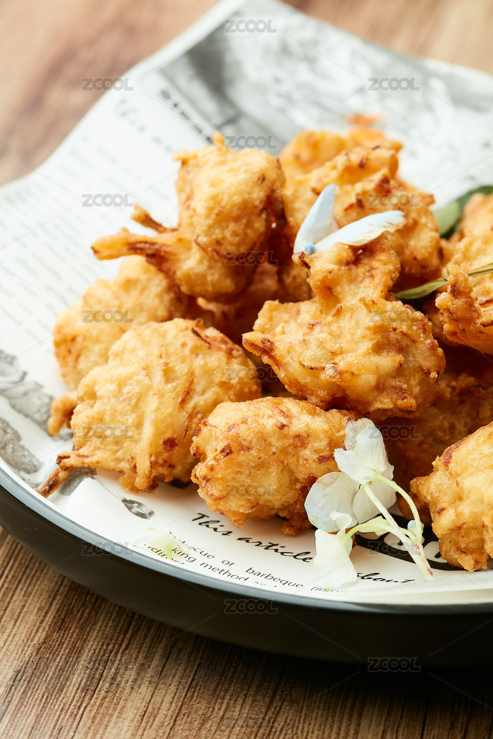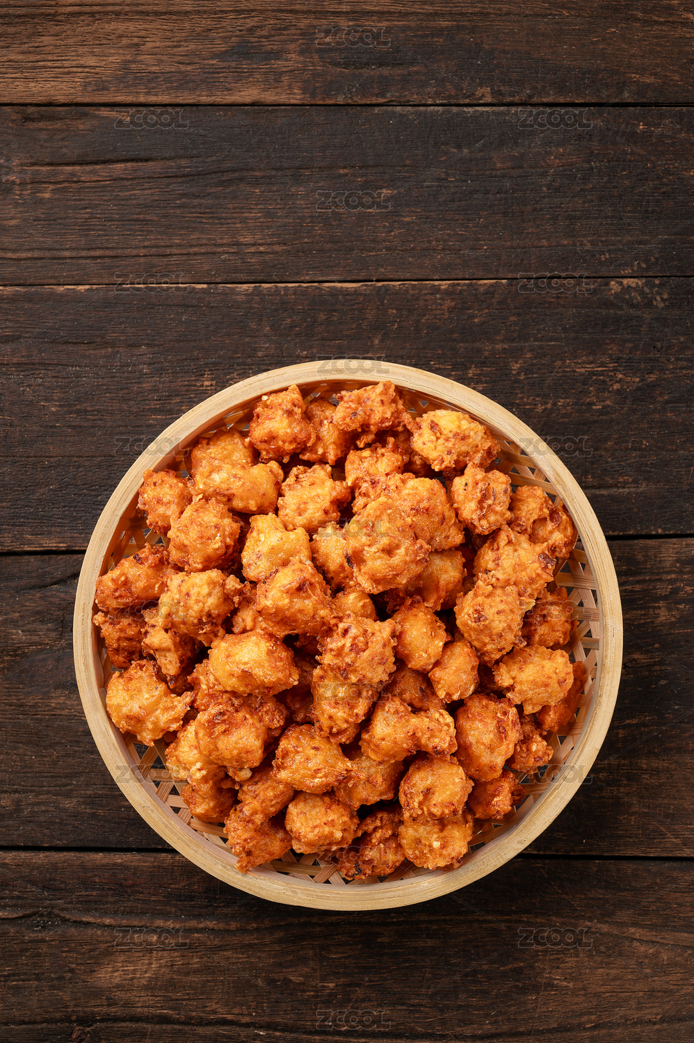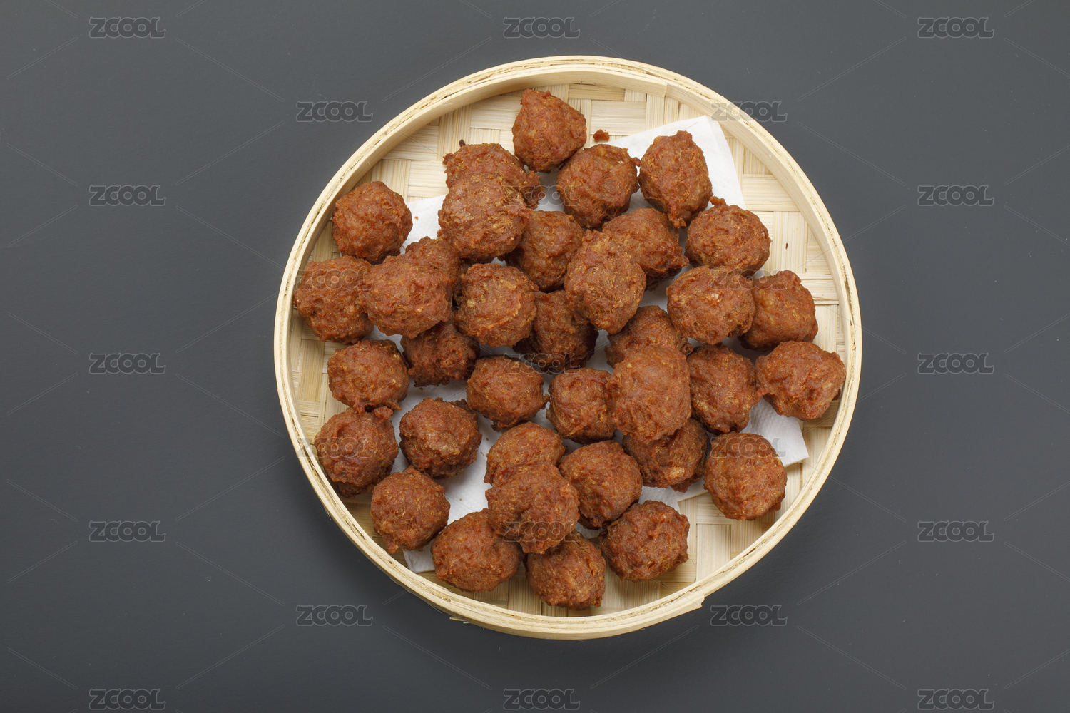 木質(zhì)盤子里的干炸丸子