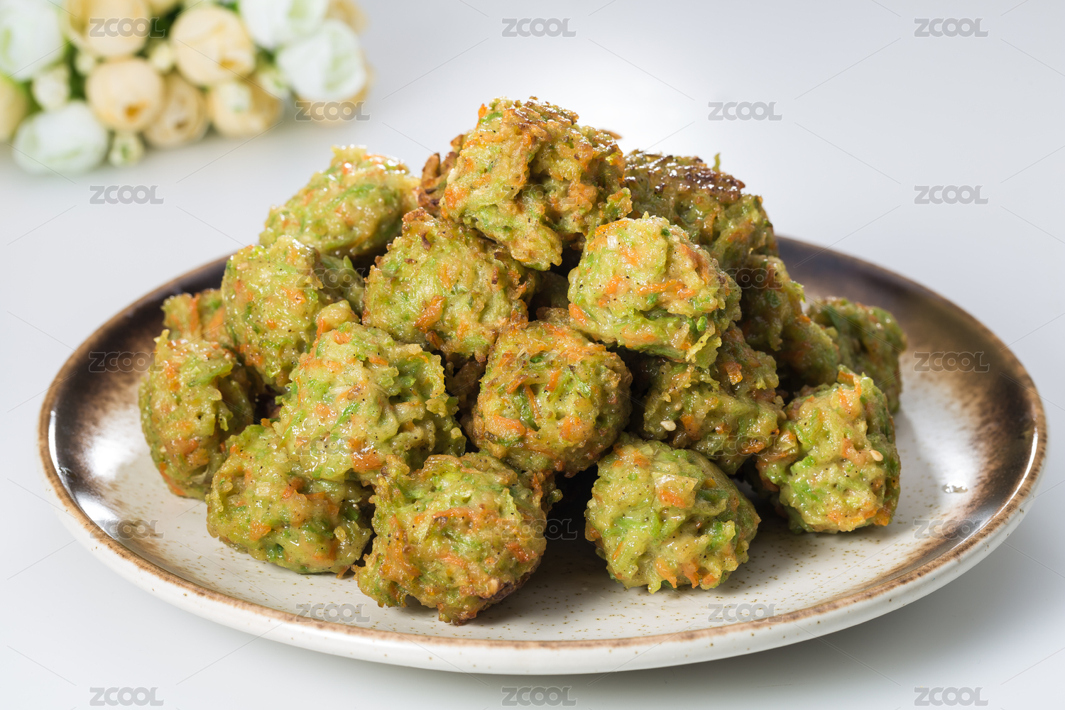 白色瓷盤裝的炸丸子