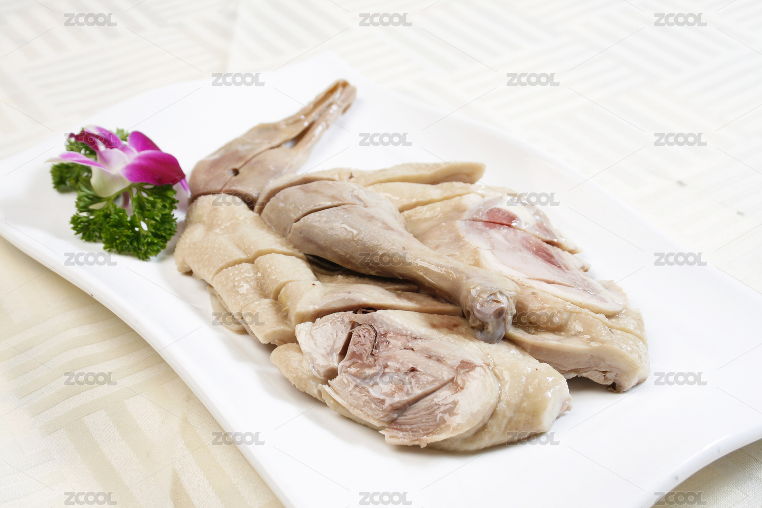 一盤切好的白切鴨肉