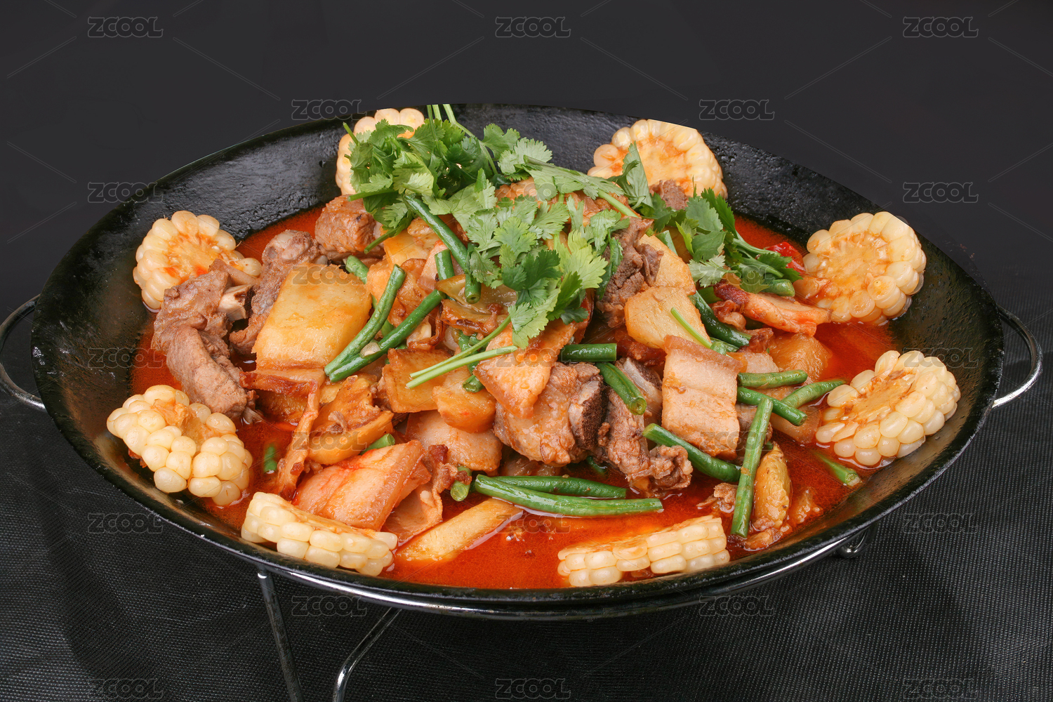 鐵鍋里盛著一鍋出亂燉菜