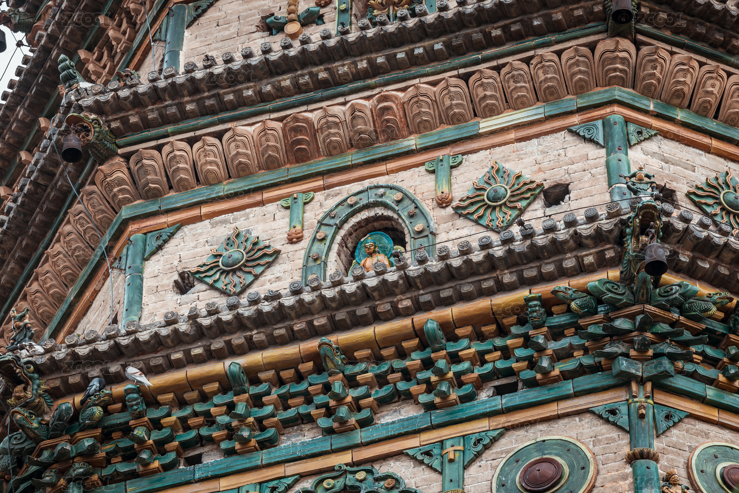 中國(guó)山西省洪洞縣廣勝寺飛虹塔局部琉璃構(gòu)件