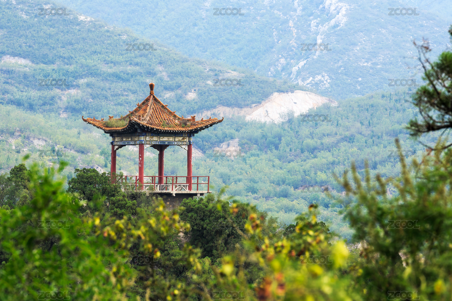 中國(guó)山西省洪洞縣霍山廣勝寺的山中古建涼亭