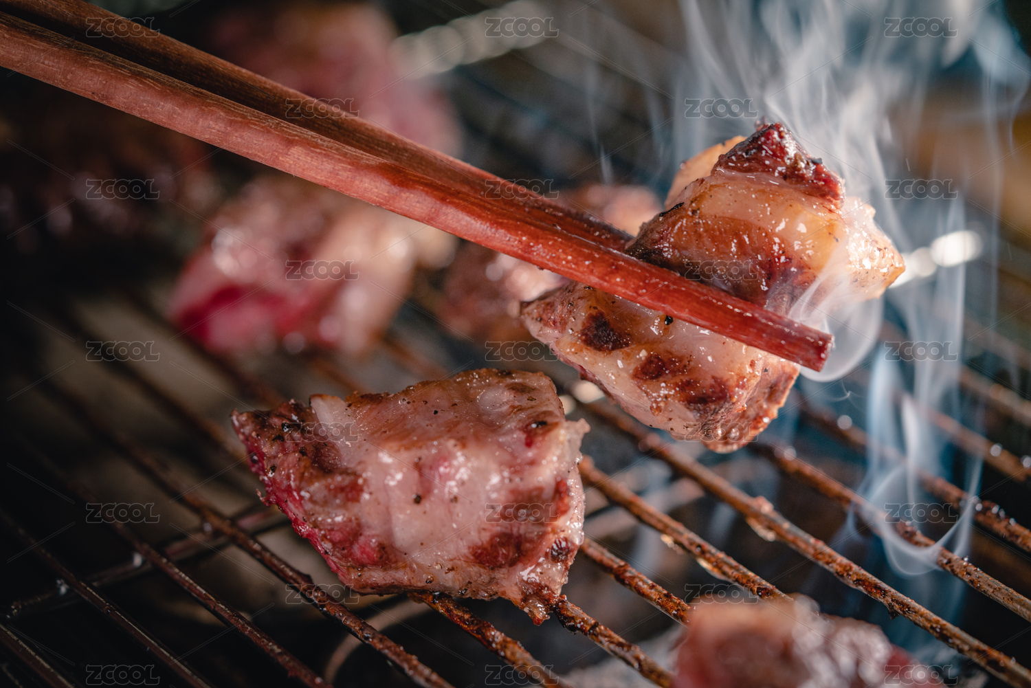 筷子夾的燒烤澳洲和牛肋眼肉