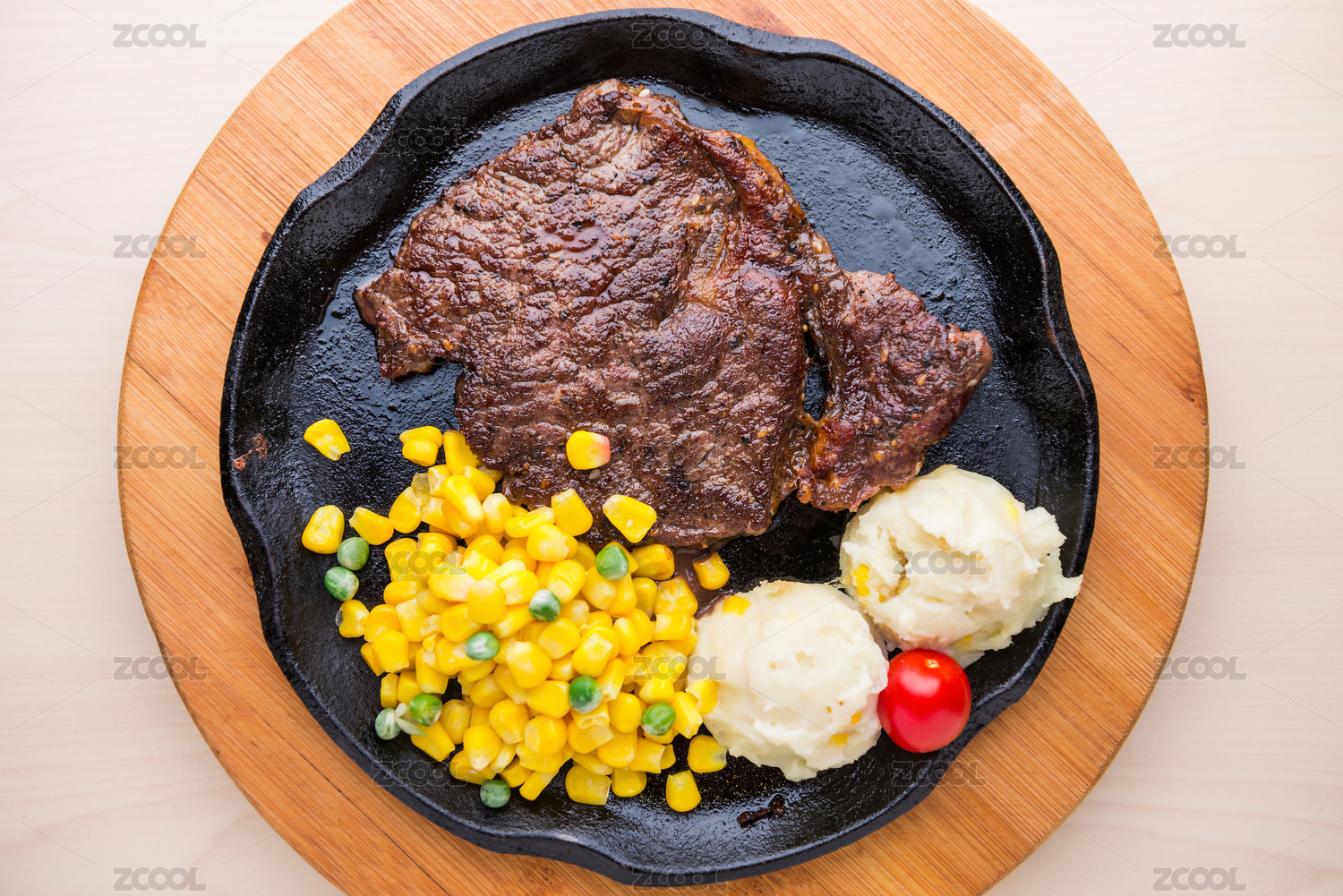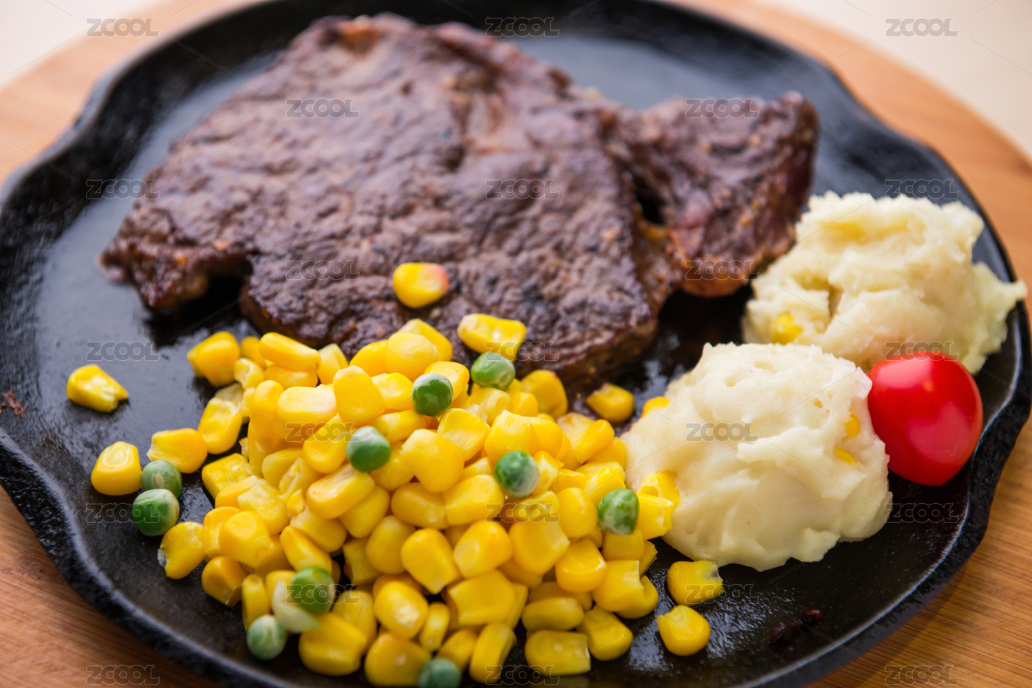 法式肋眼牛排配土豆泥和玉米粒套餐
