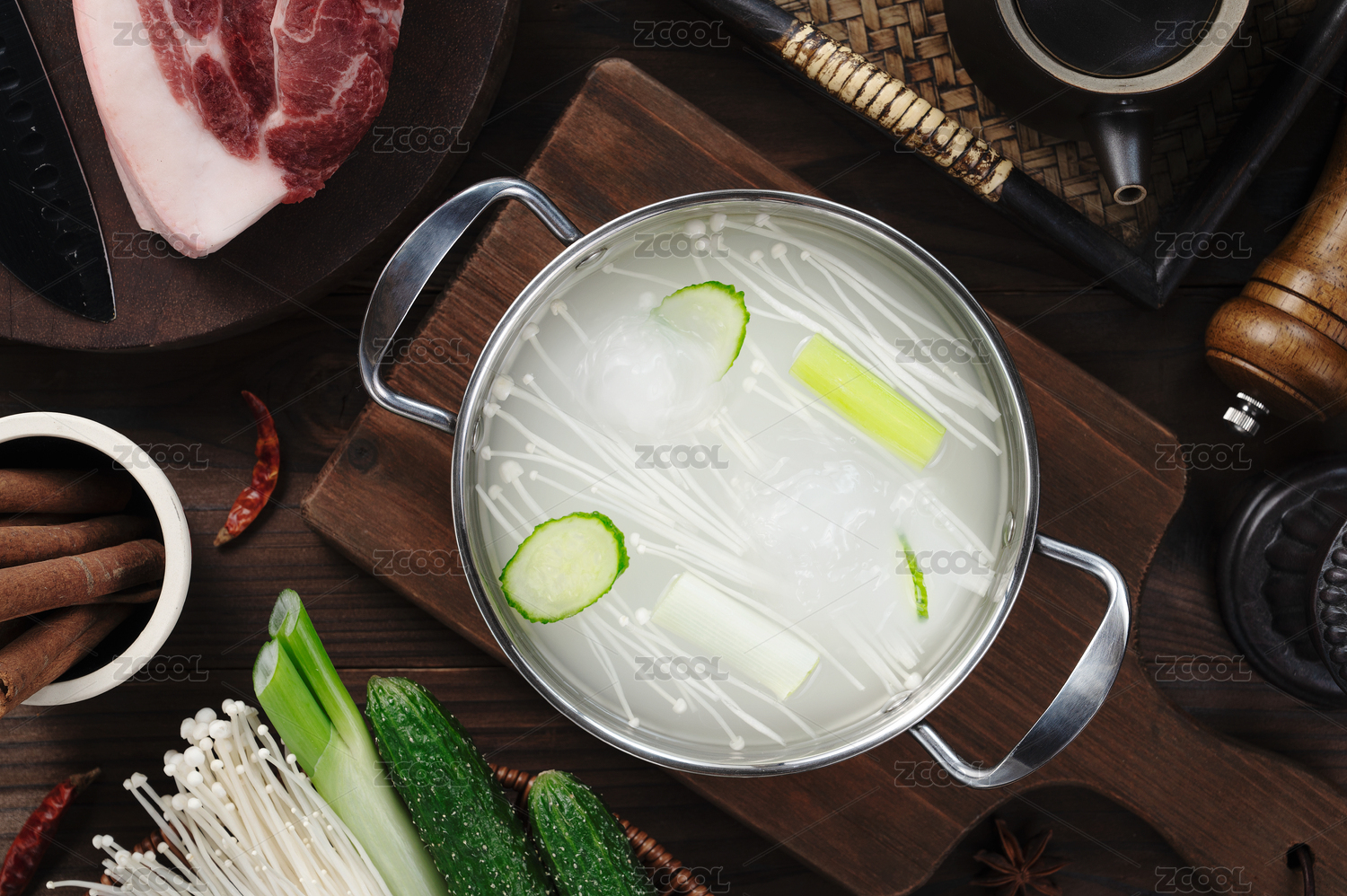 餐桌上的骨湯鍋底