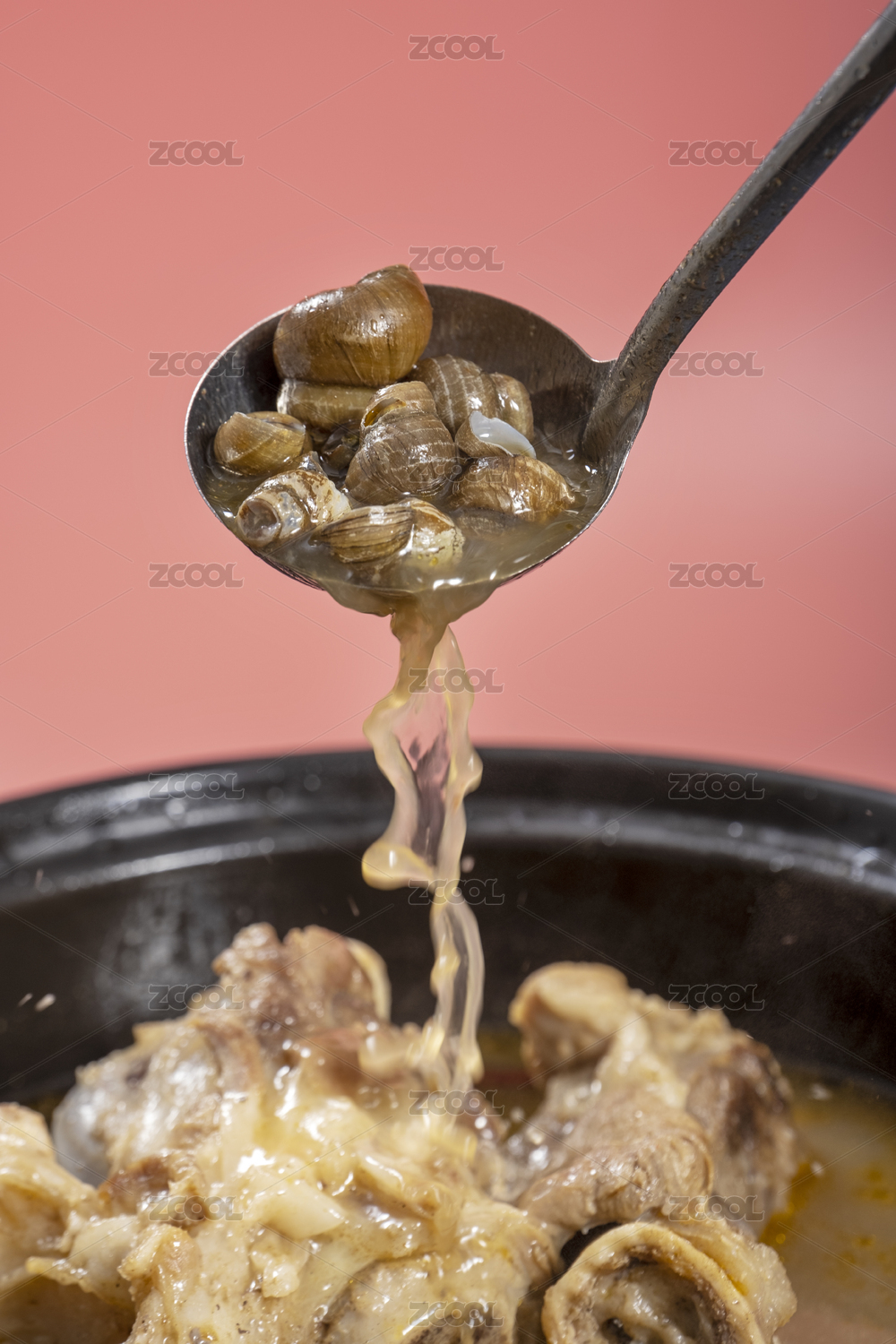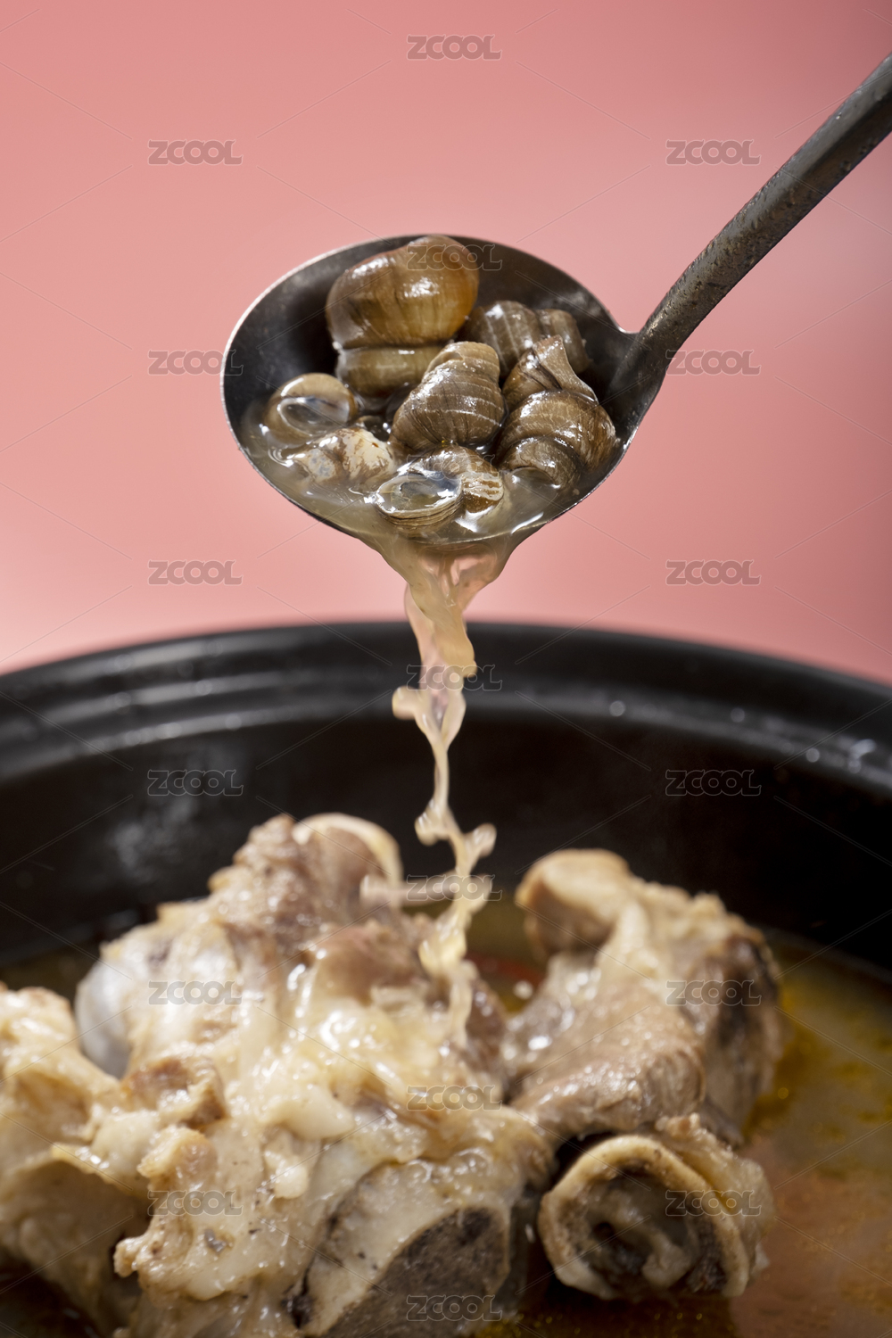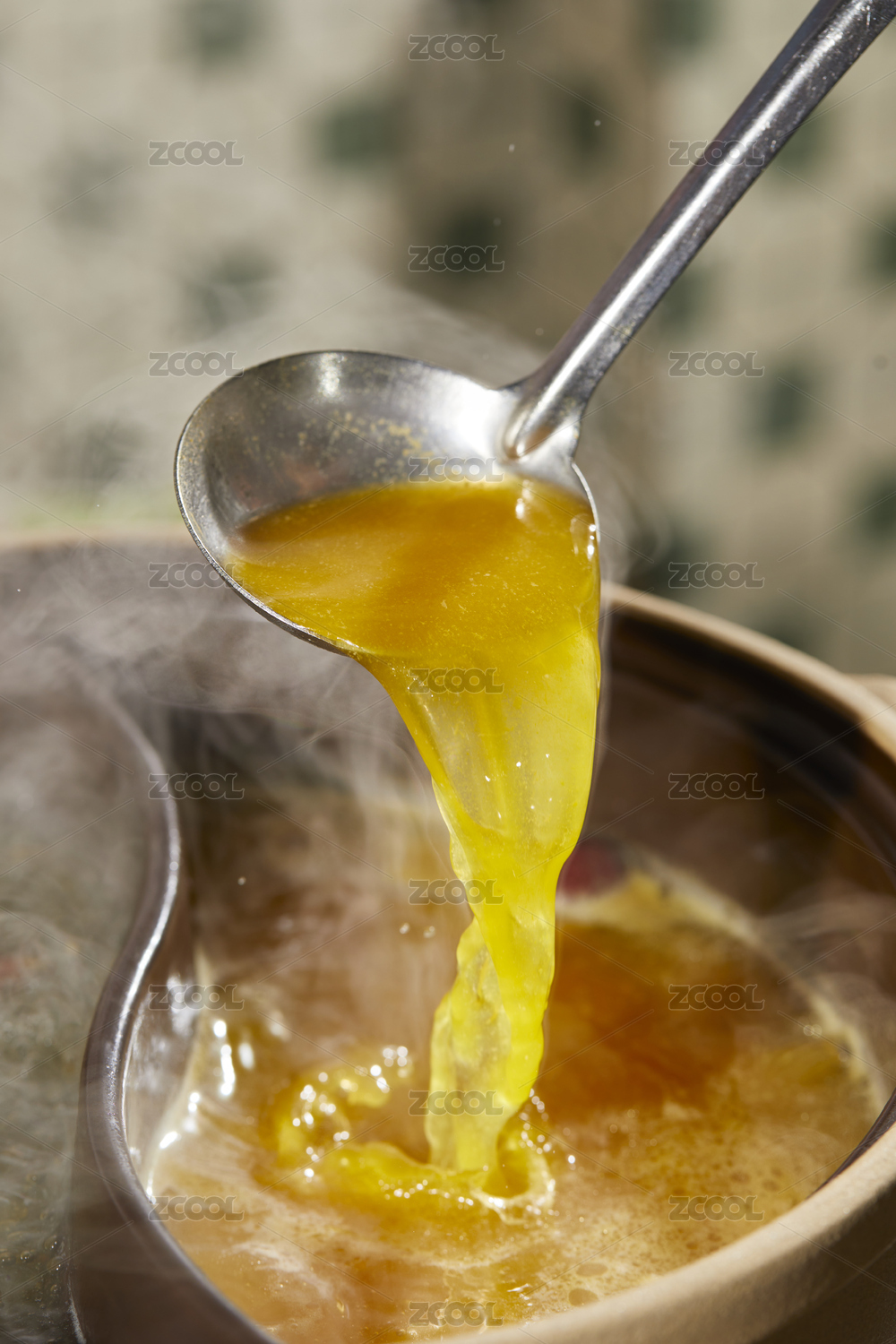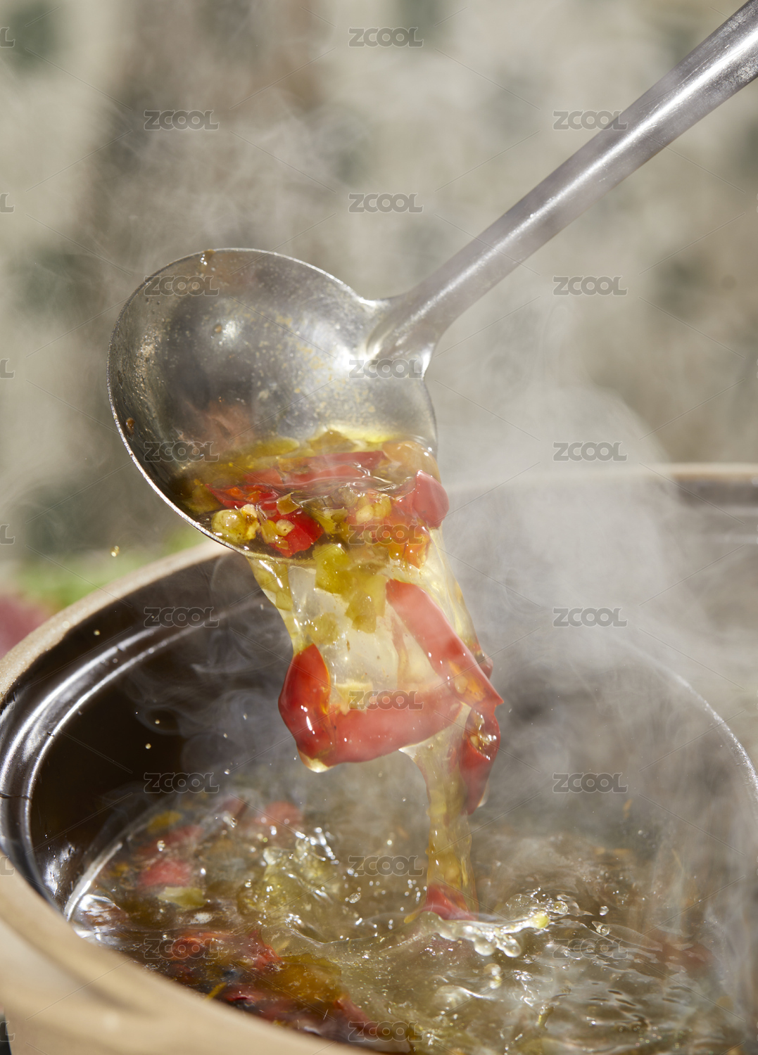 螺螄粉的湯底制作用勺子舀起螺螄