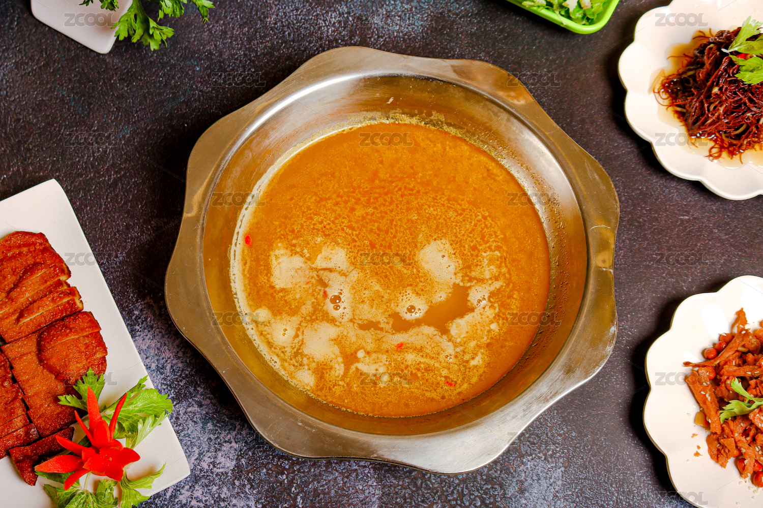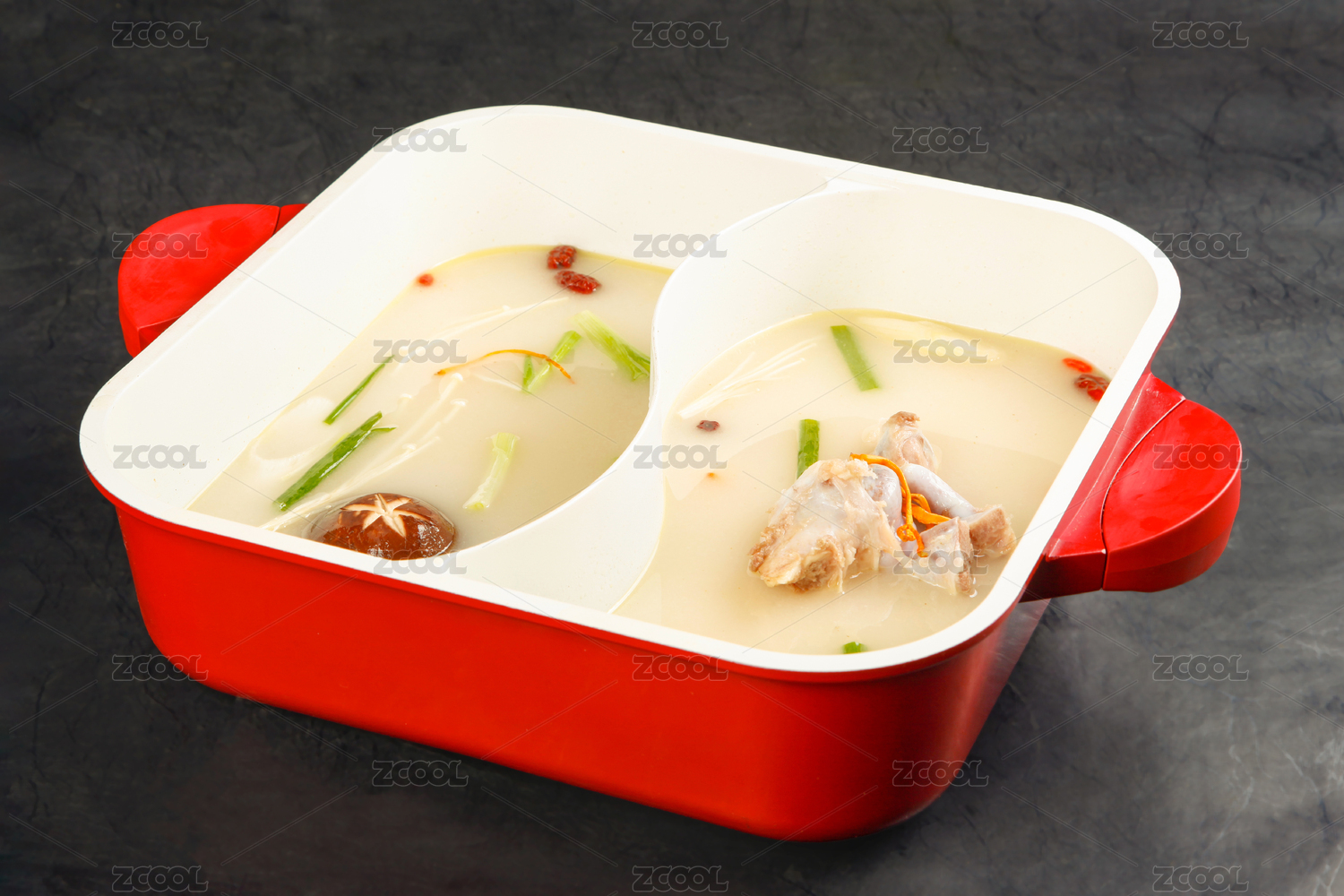 深底上的骨湯火鍋底料