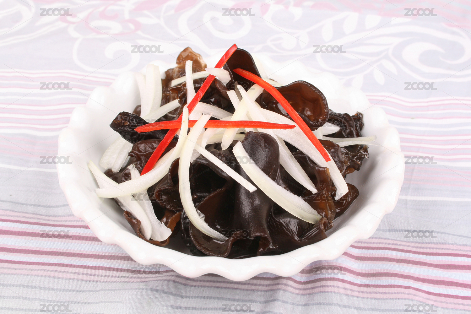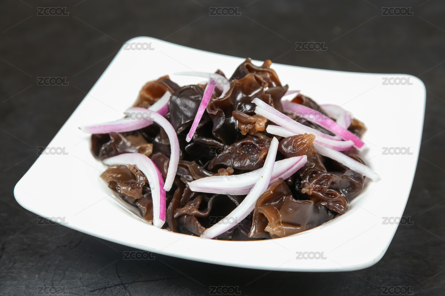 放在盤子里的涼拌洋蔥木耳
