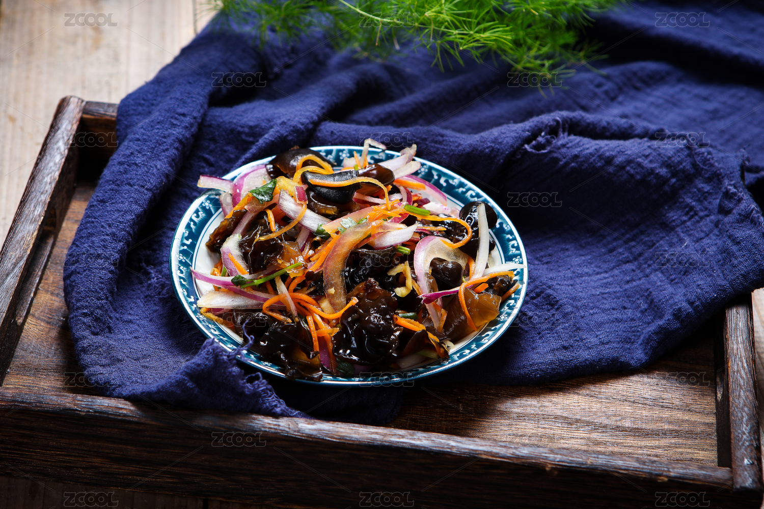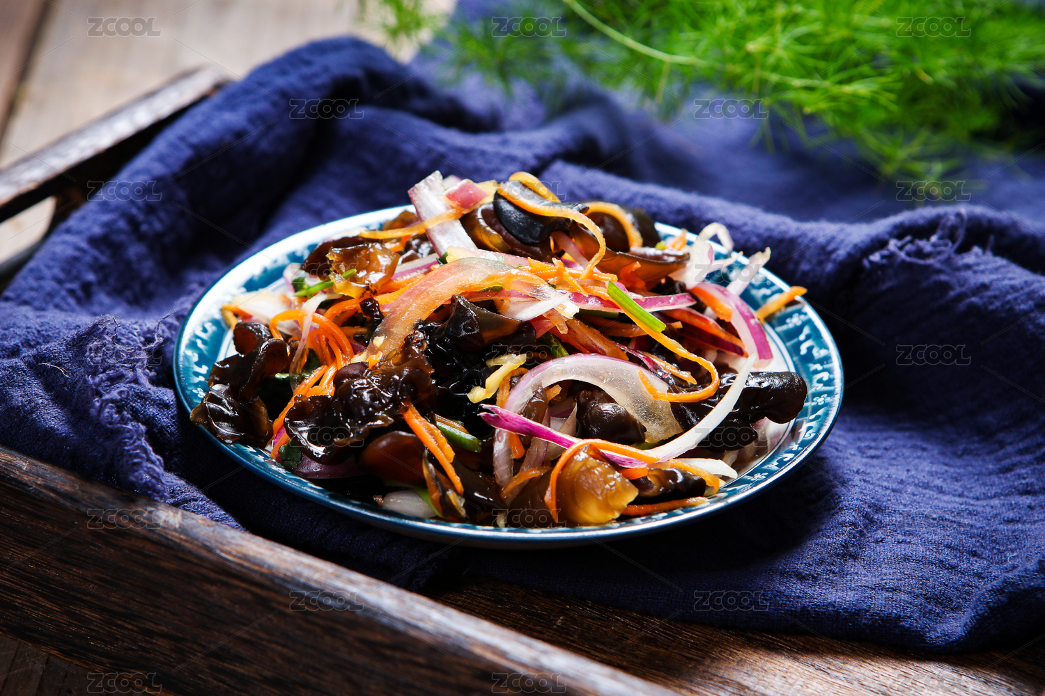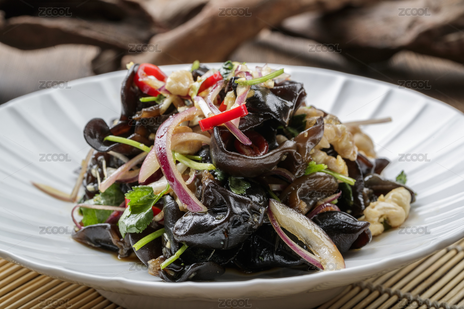 木紋背景上的涼拌木耳