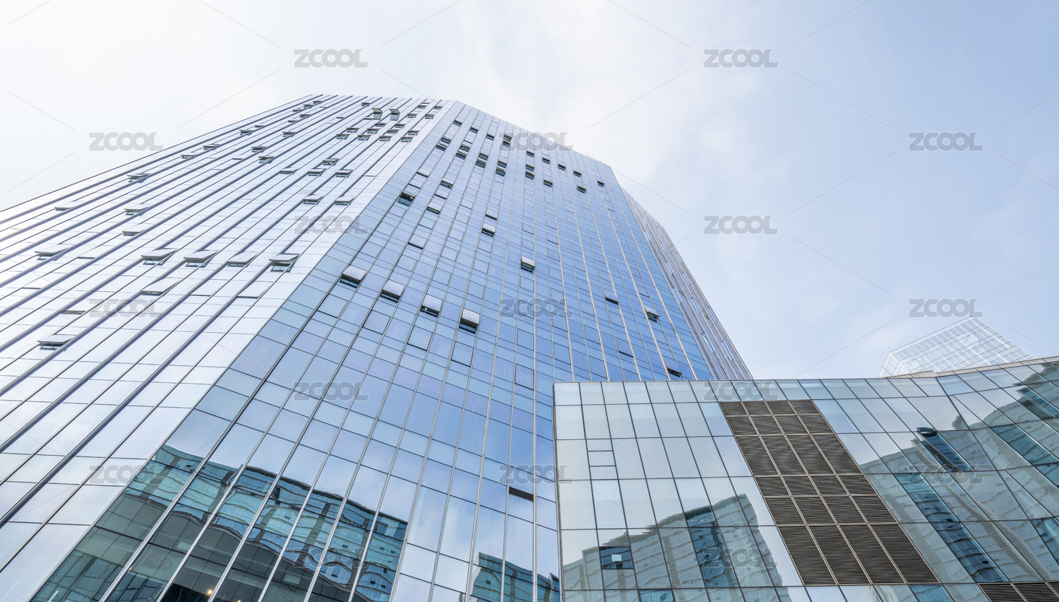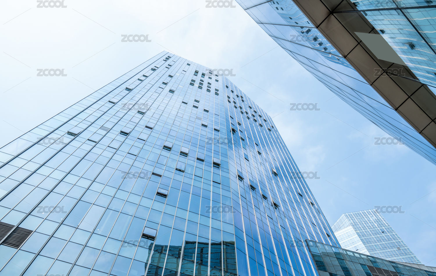 仰拍的城市CBD辦公樓玻璃幕墻