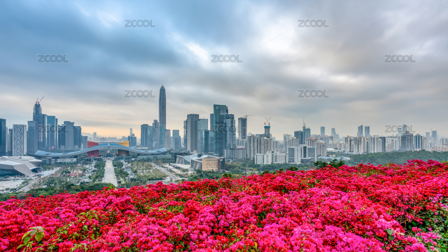 深圳現(xiàn)代城市景觀和勒杜鵑花