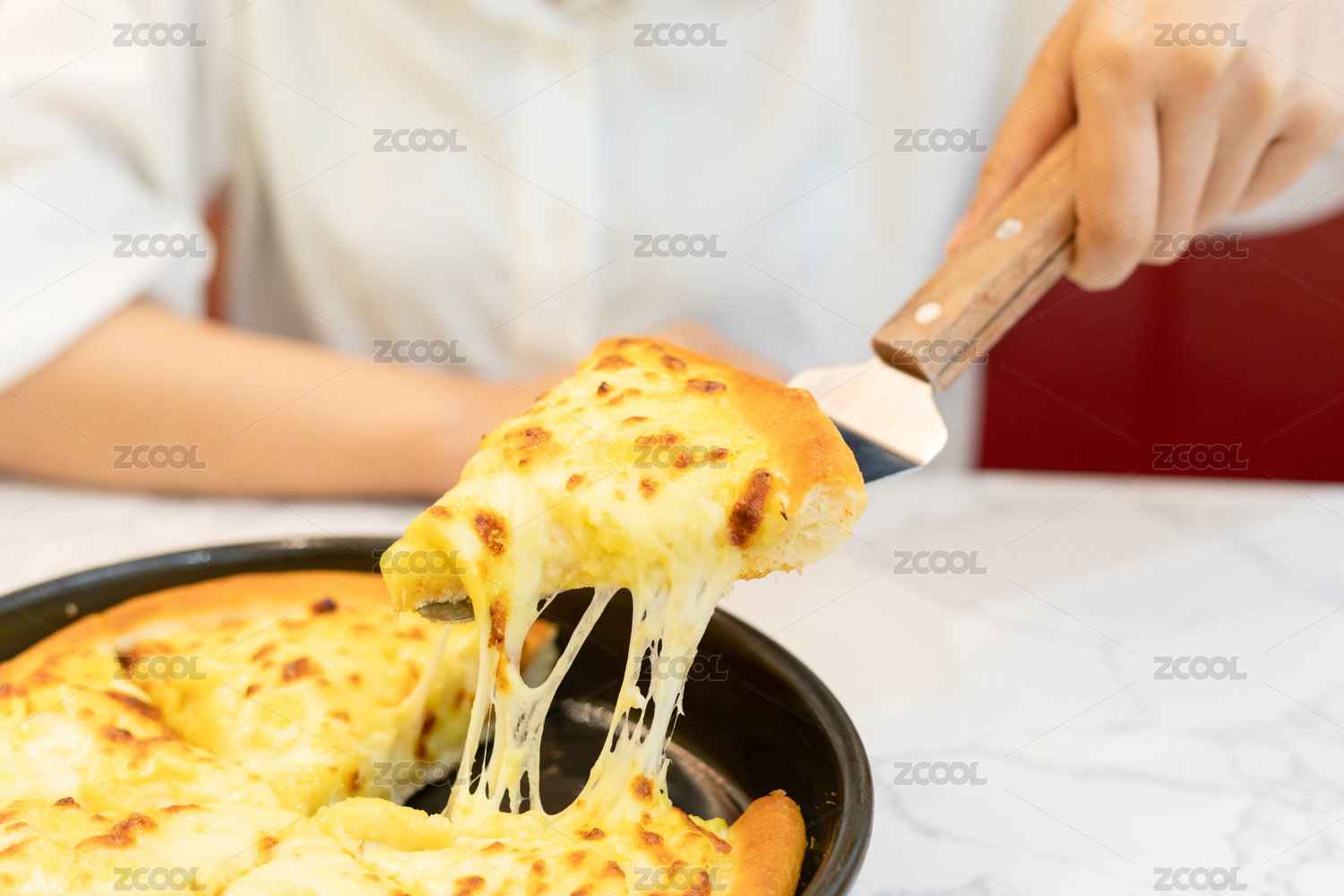 餐桌上一個(gè)美味的榴蓮披薩