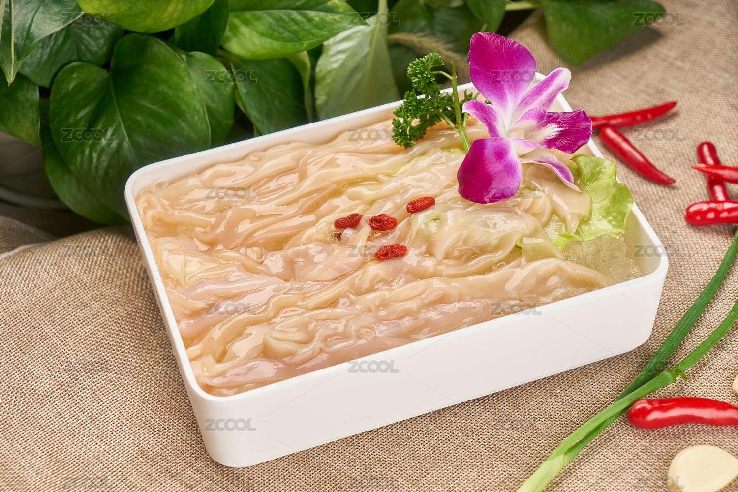 放在盤子里的火鍋配菜毛肚絲