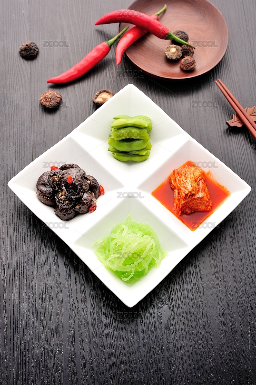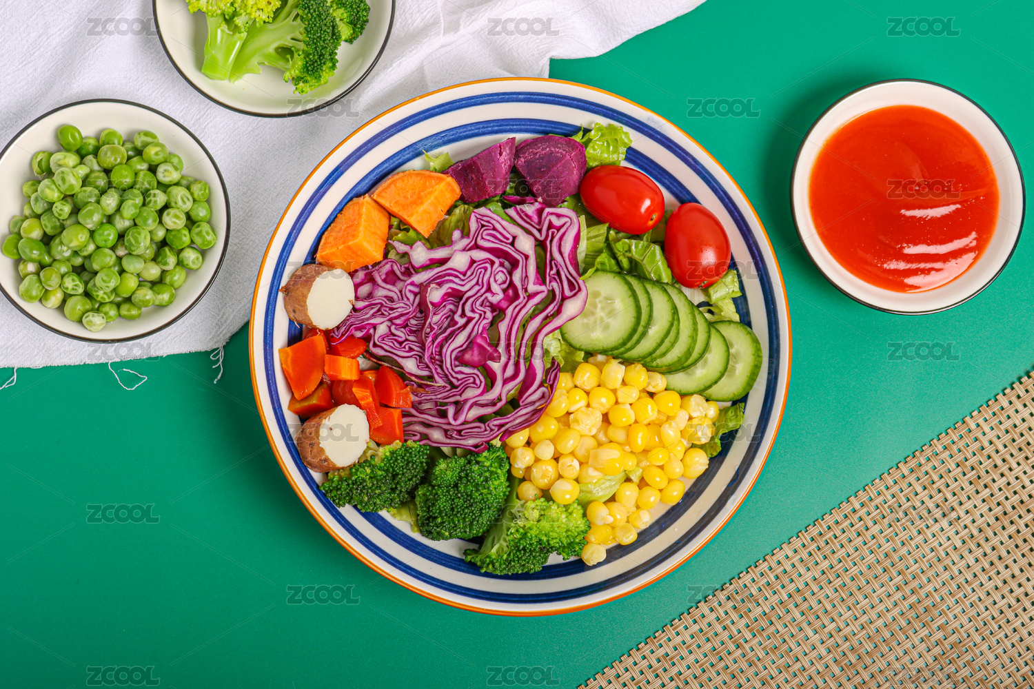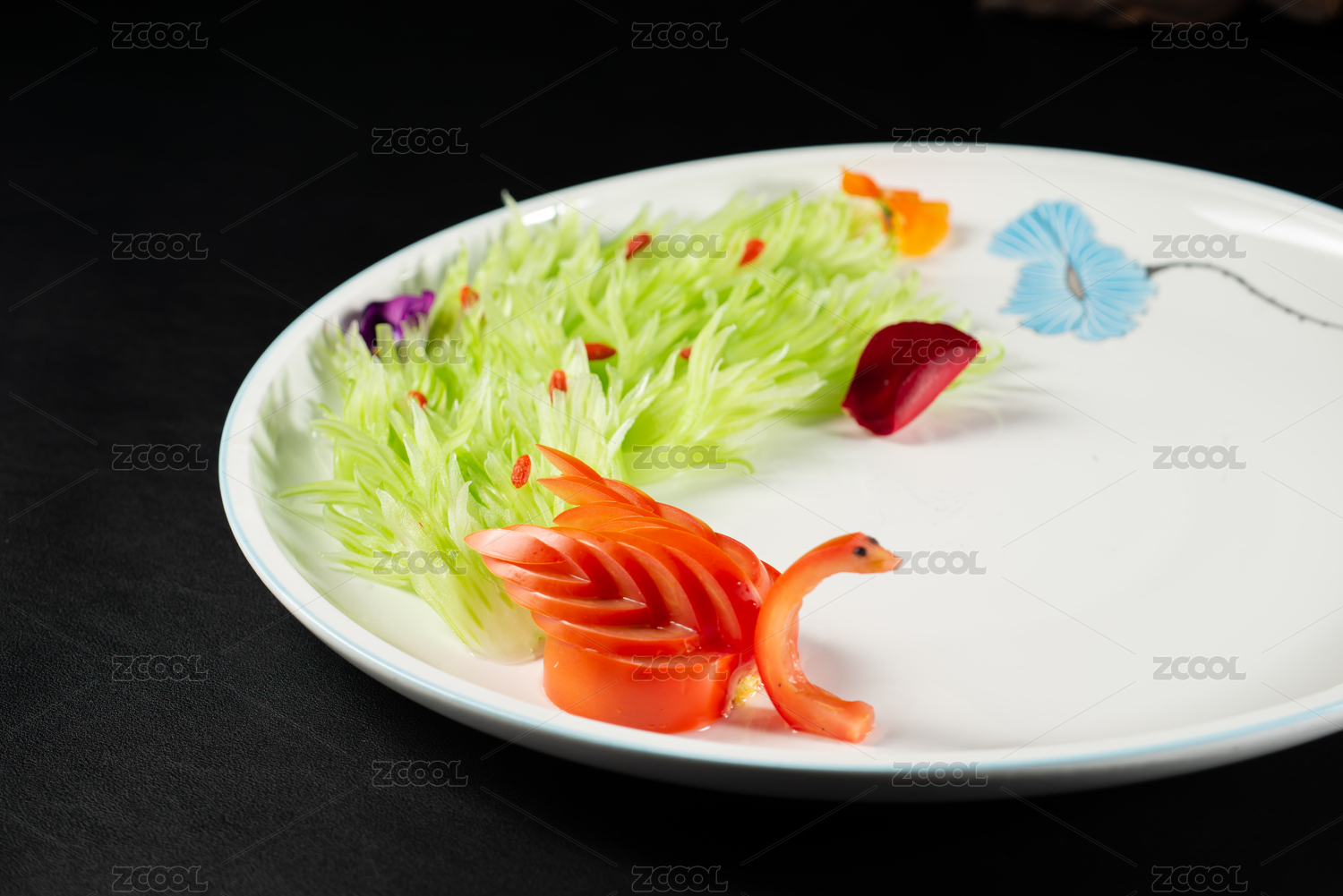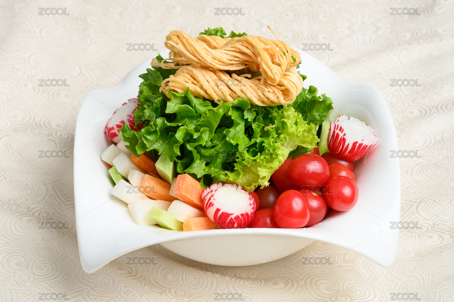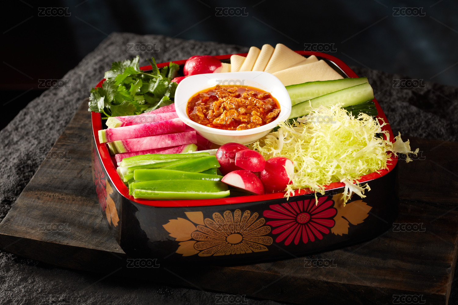 竹制餐具裝的農(nóng)建田園時蔬熏豆干