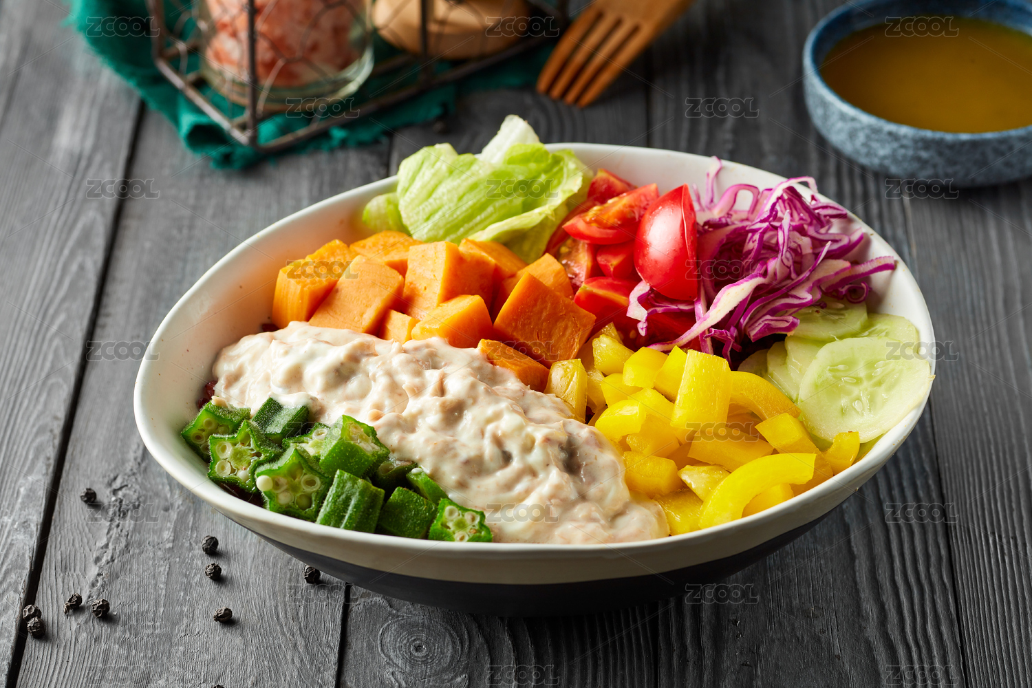 輕食食譜 田園時蔬拌飯配烤豬肉