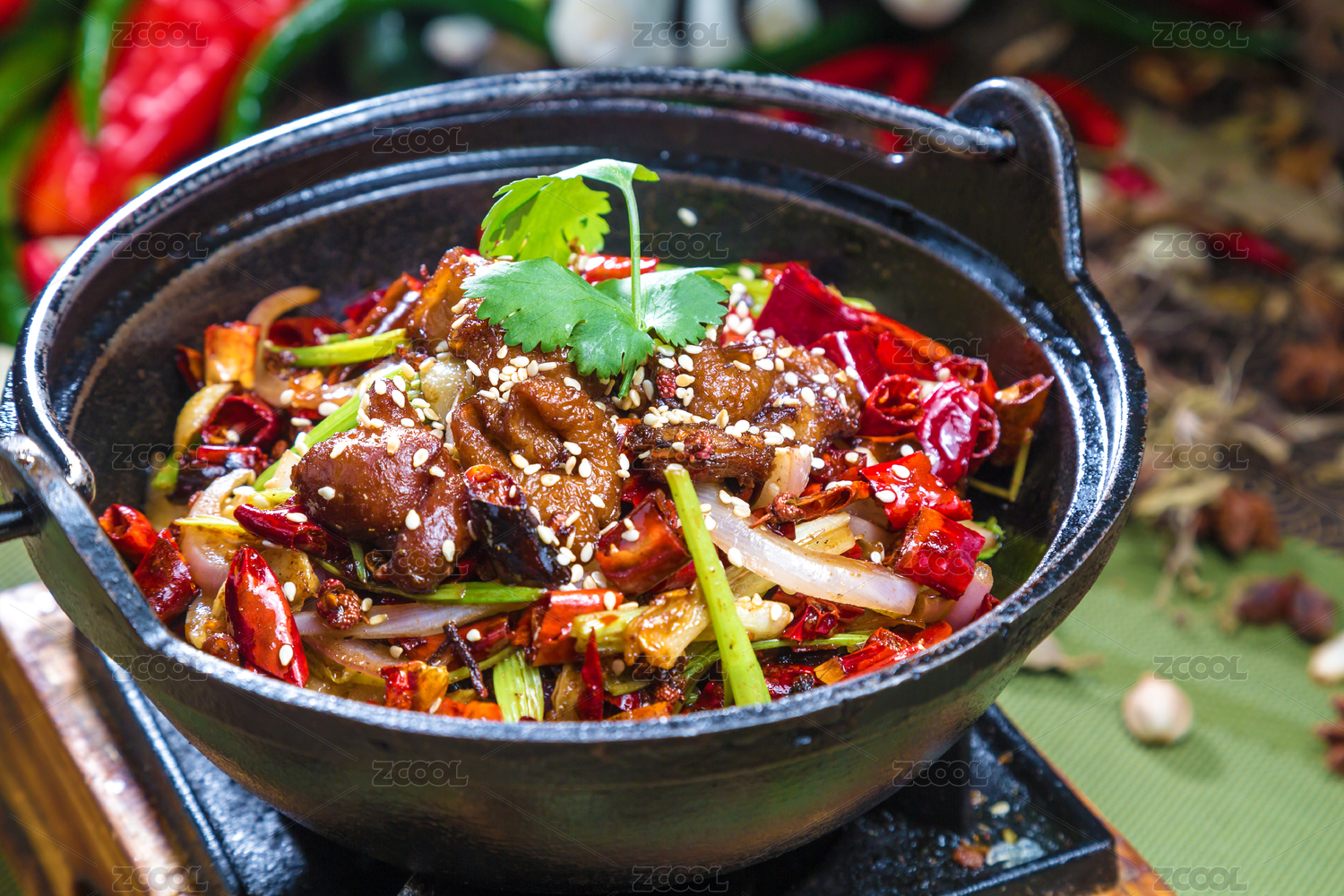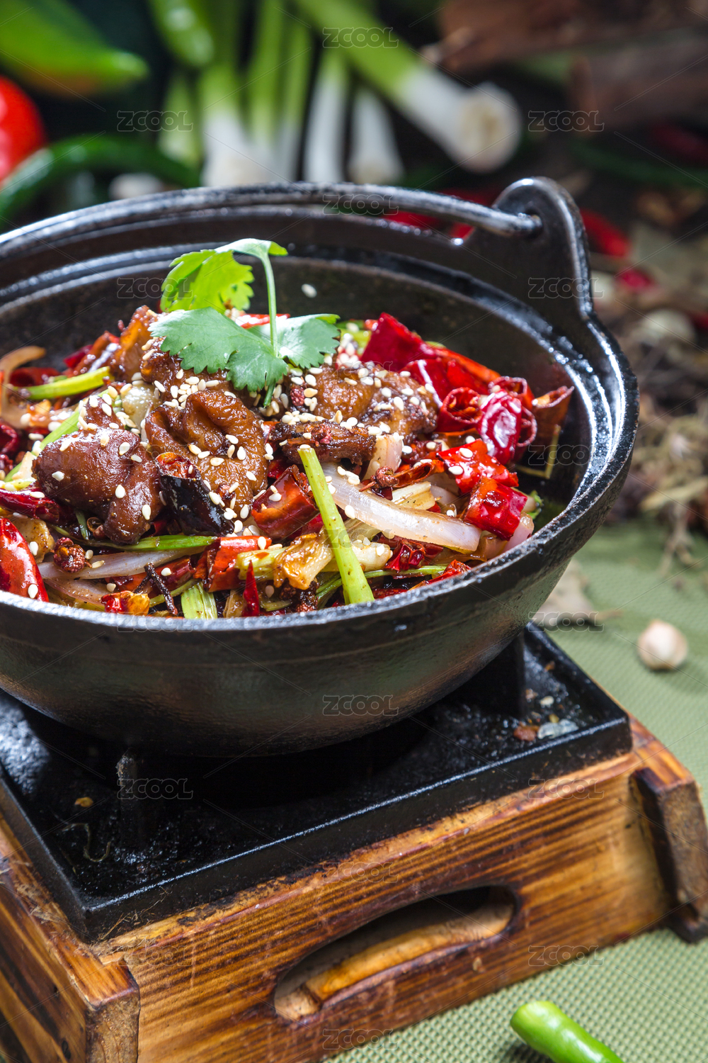 暗色水泥紋桌上放著一盤(pán)辣炒肥腸