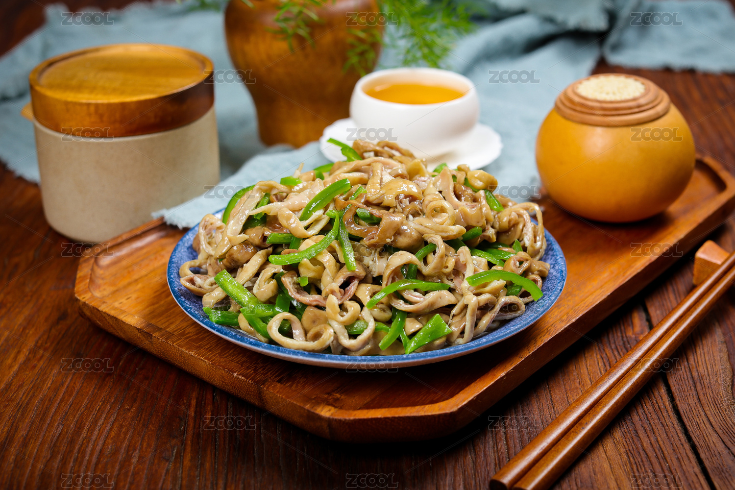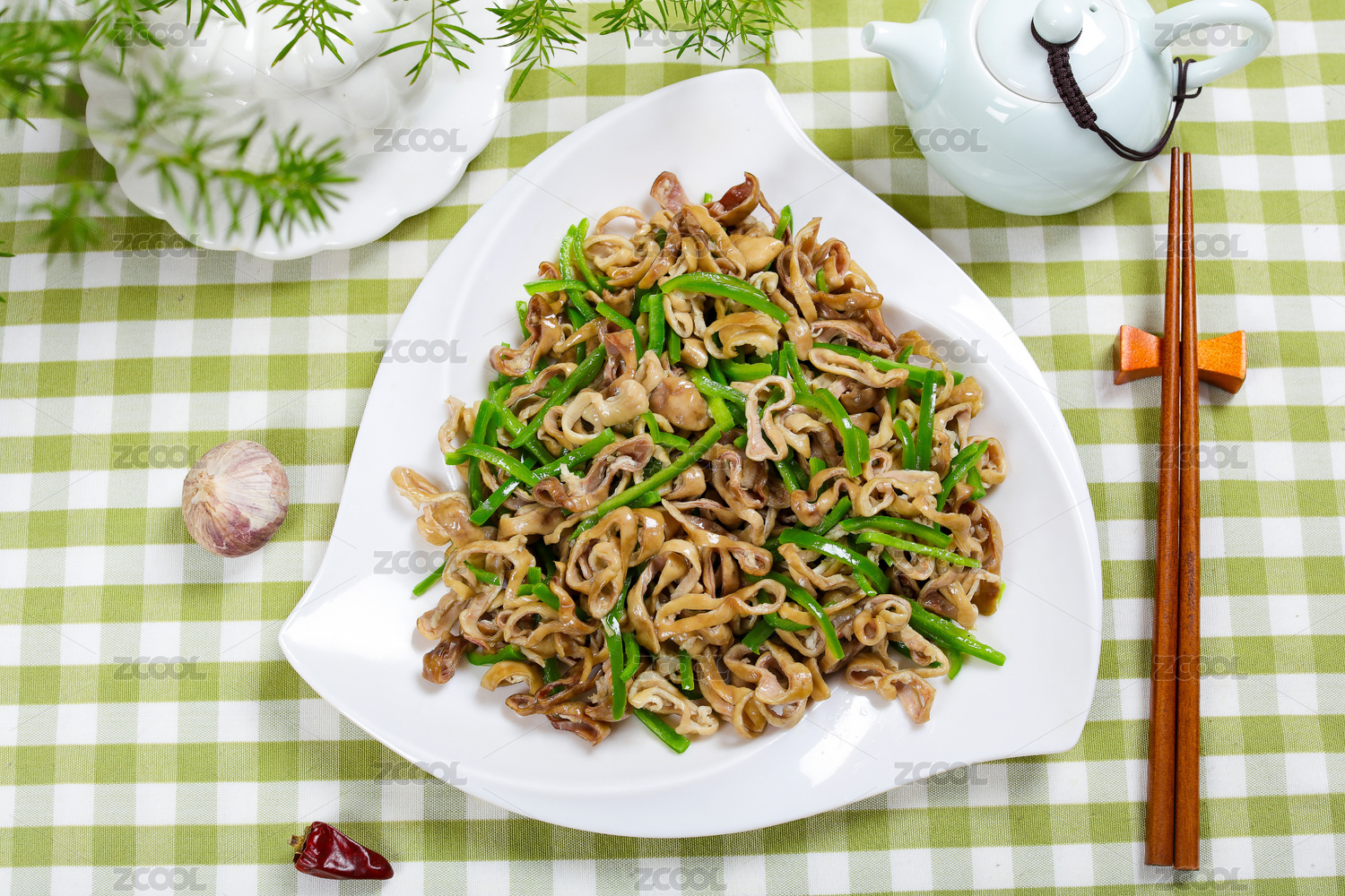 家常小炒菜肴辣椒爆炒豬肥腸絲