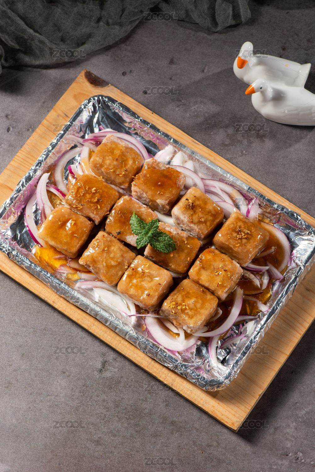 精美餐具裝的鐵板香煎椒鹽午餐肉