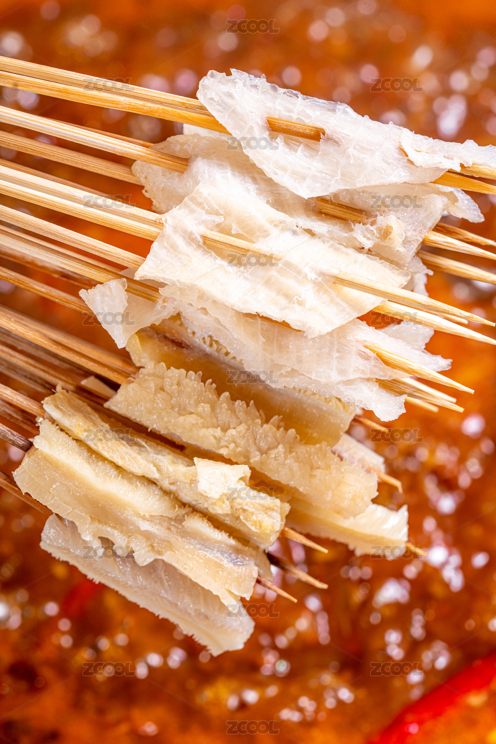 一把竹簽涮串白色毛肚串串香