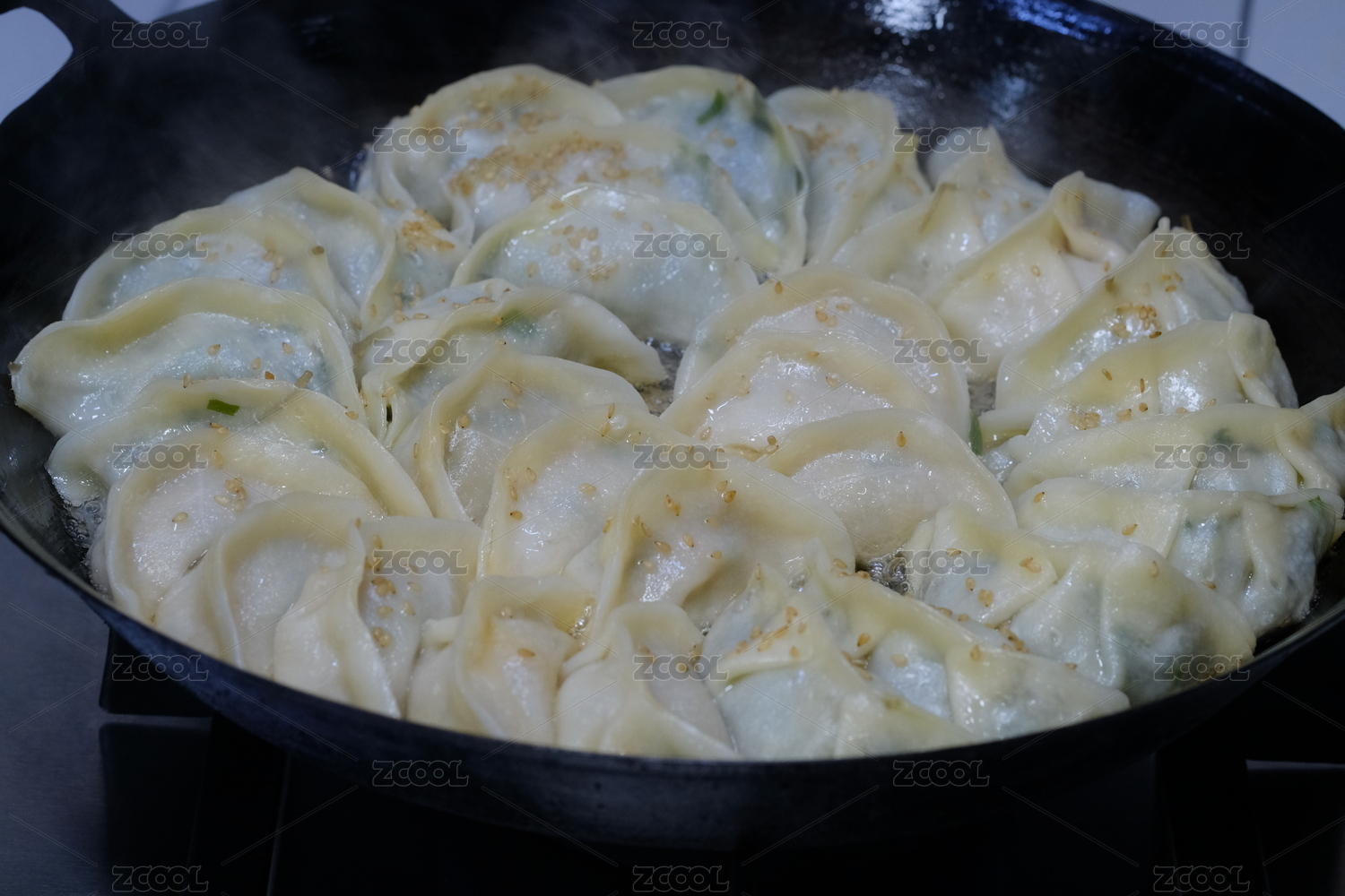 鐵鍋里的鍋貼