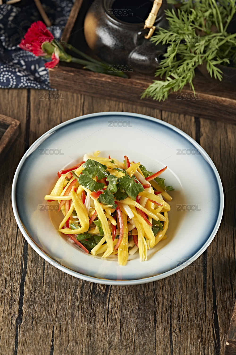 彩椒絲香菜葉巧拌野生黃花菜