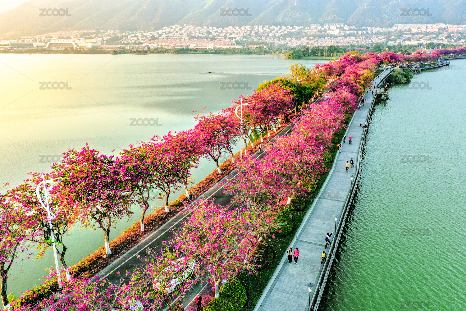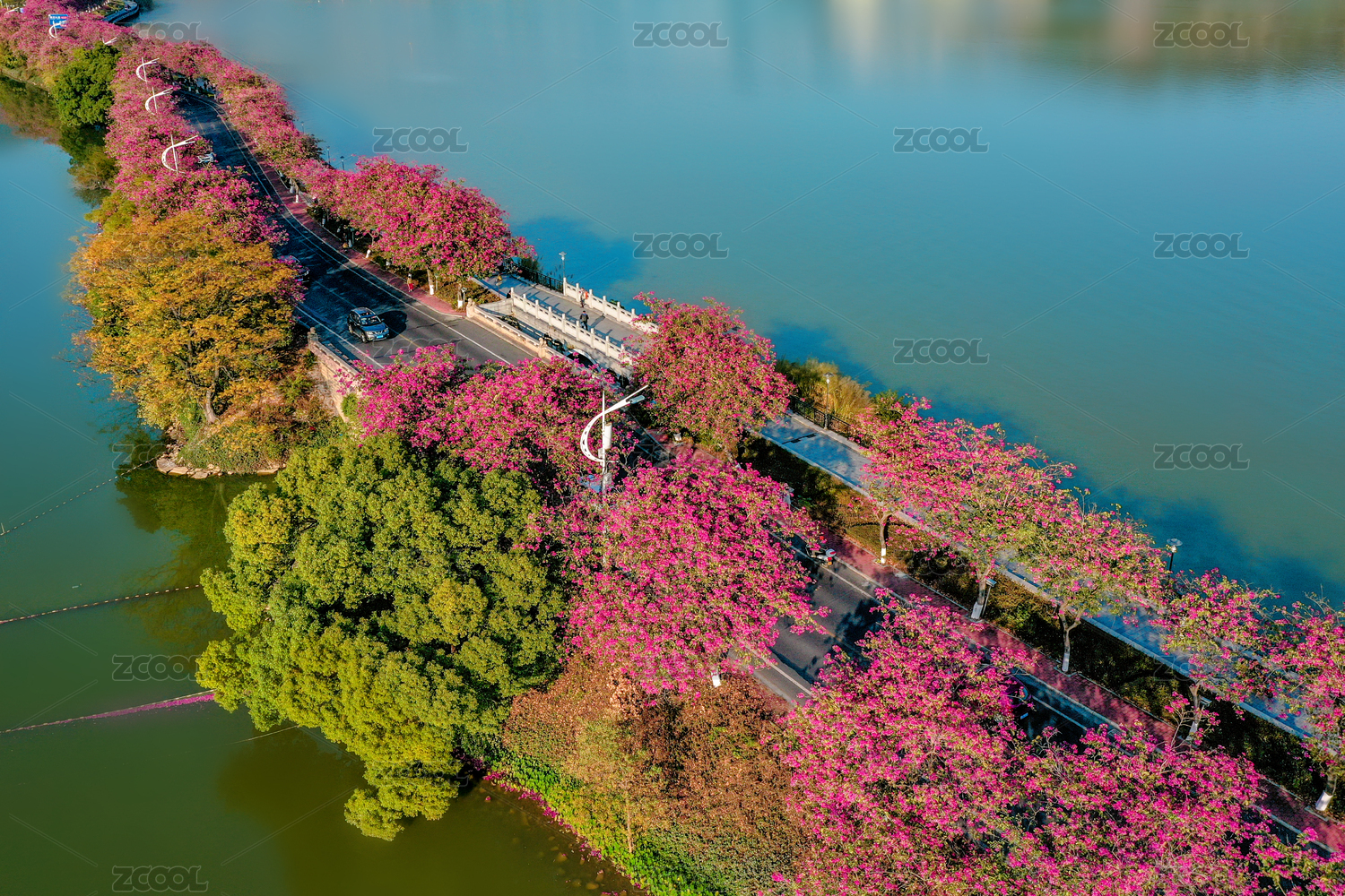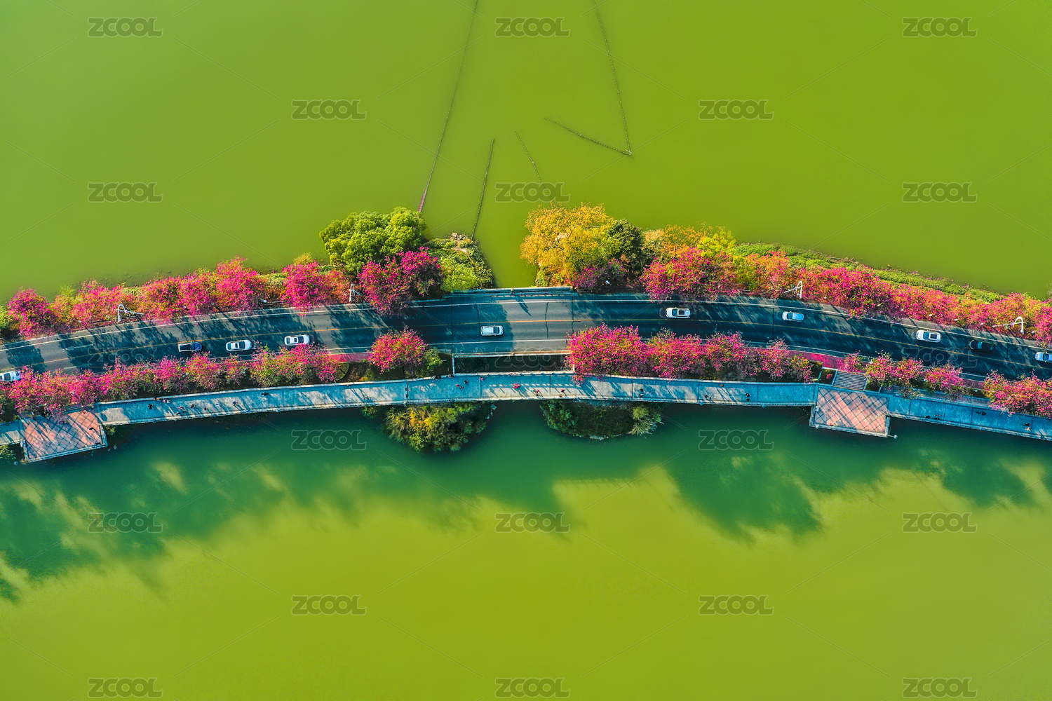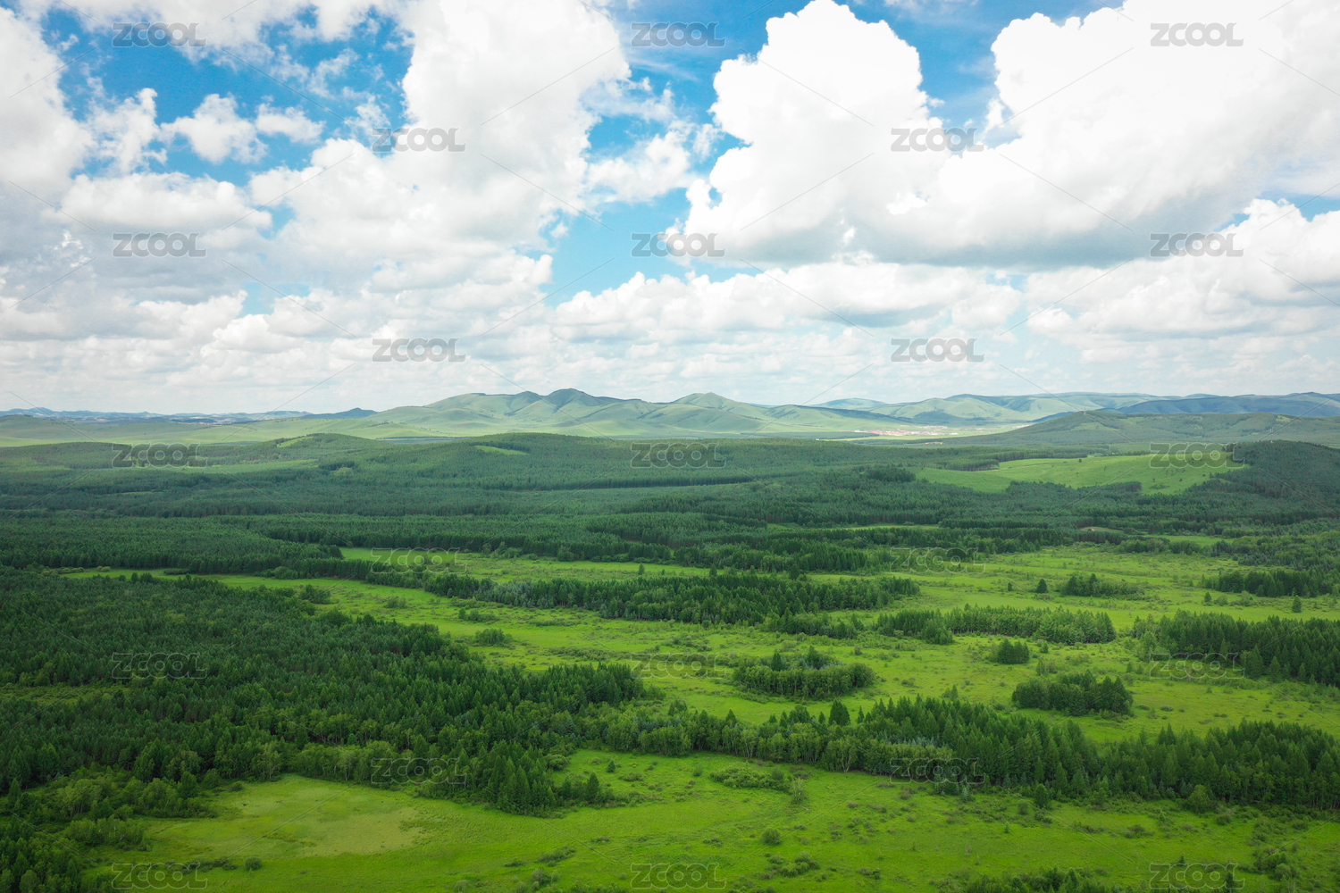 中國河北省承德市七星湖景區(qū)航拍視角人工林原