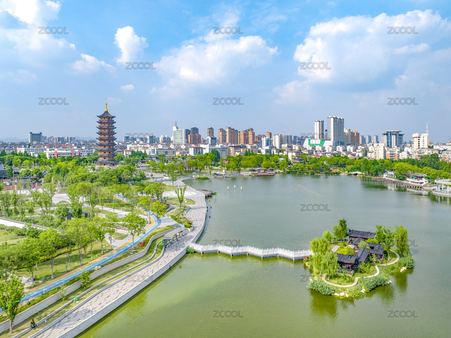 航拍中國江蘇省鎮(zhèn)江句容葛仙湖公園