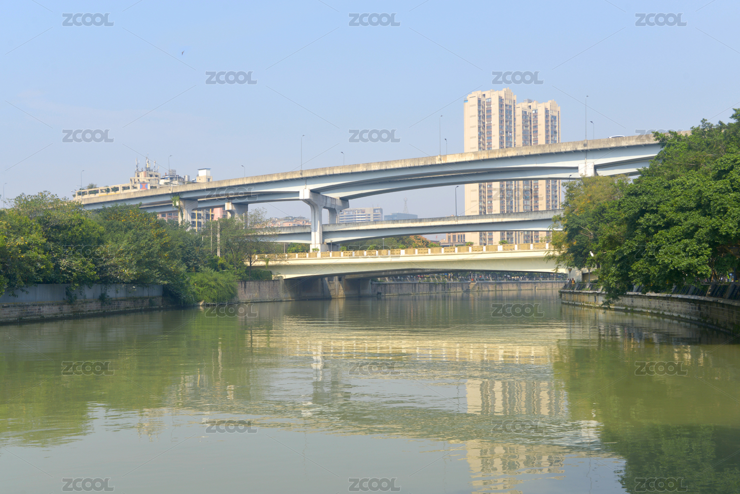四川成都錦江上的東二環(huán)高架橋 城市風(fēng)光