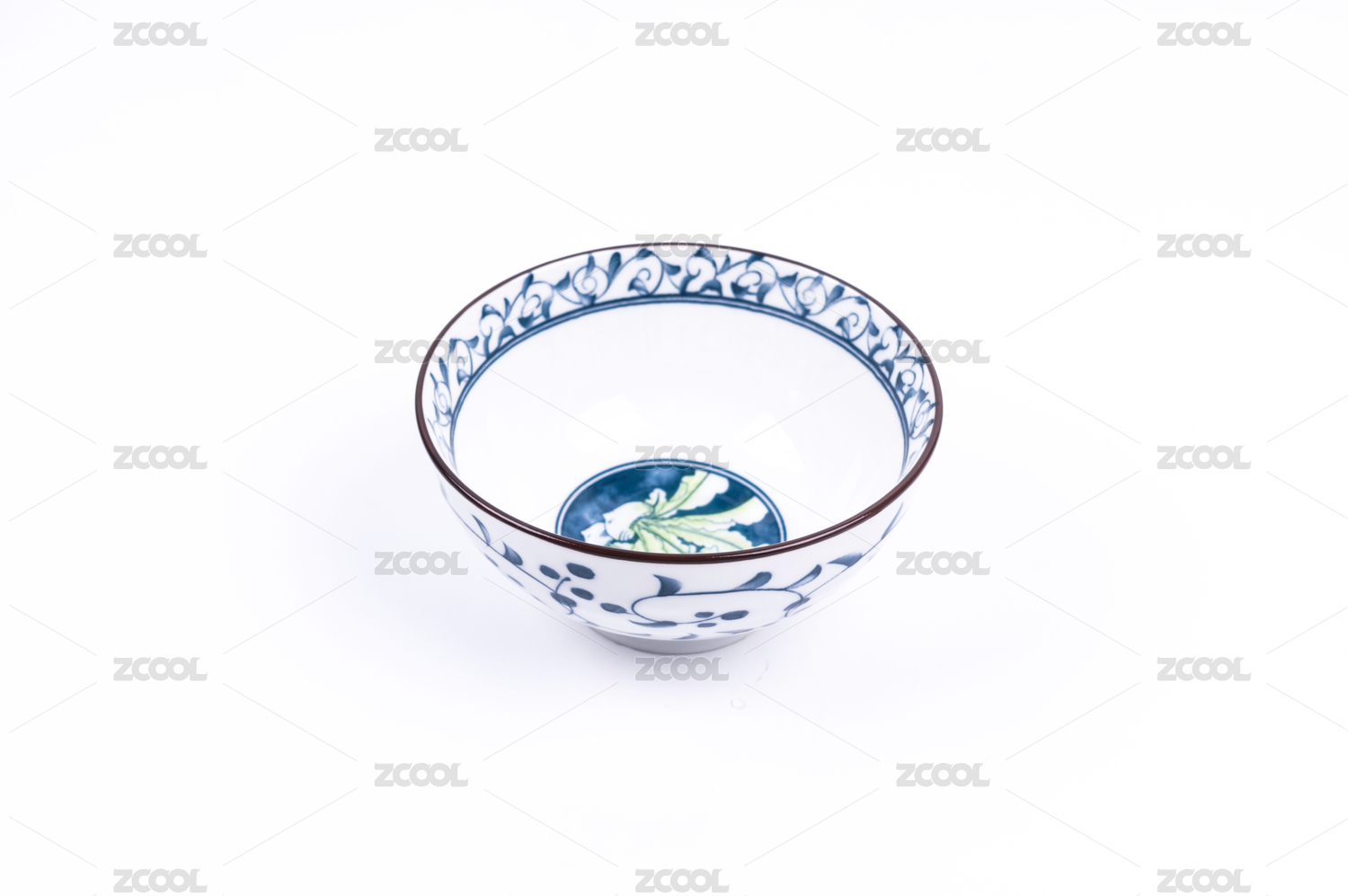 白背景上一只空青花瓷碗