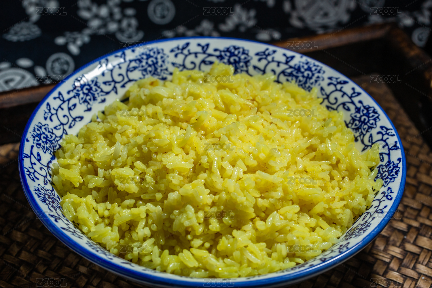 中式青花瓷碗里的米飯