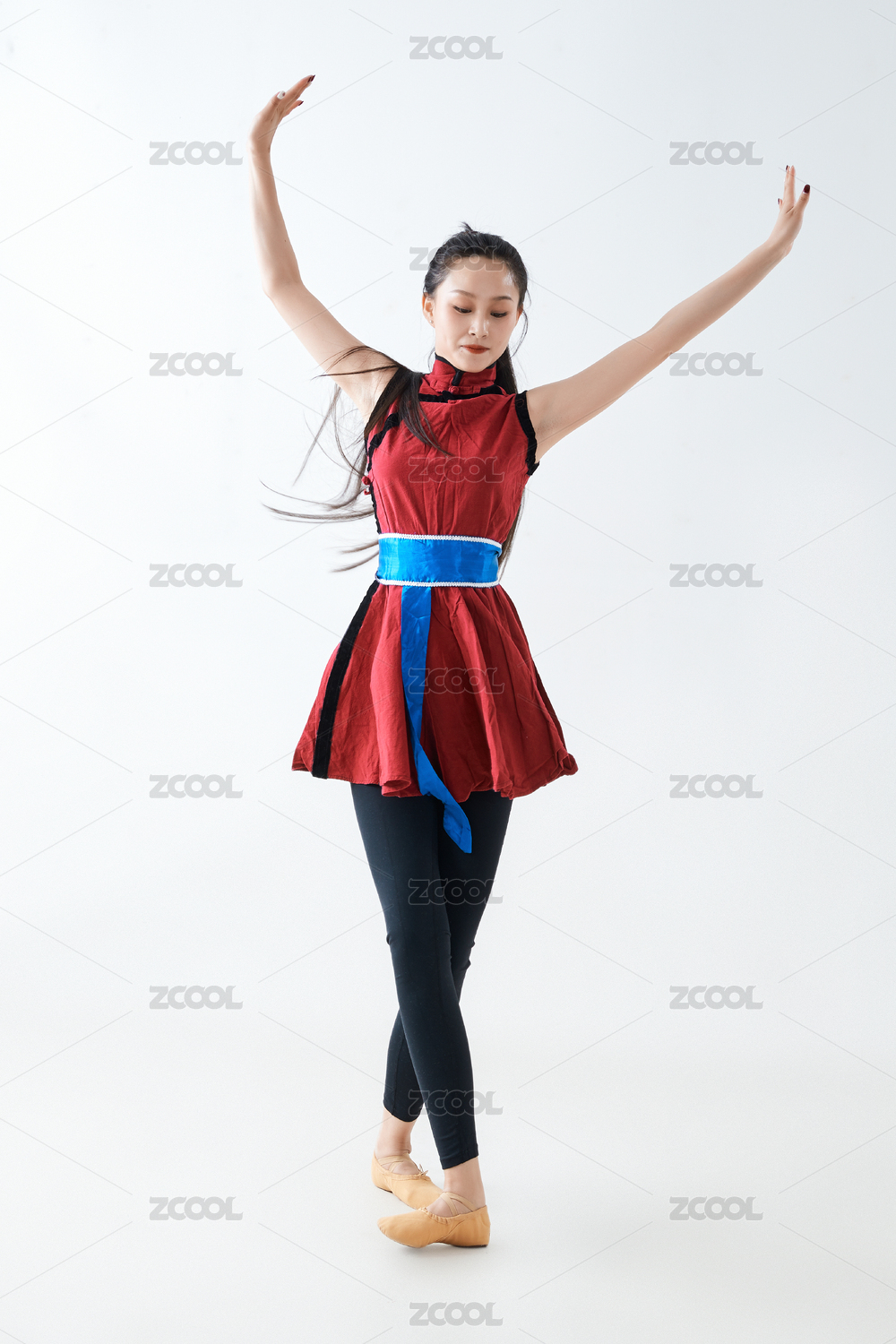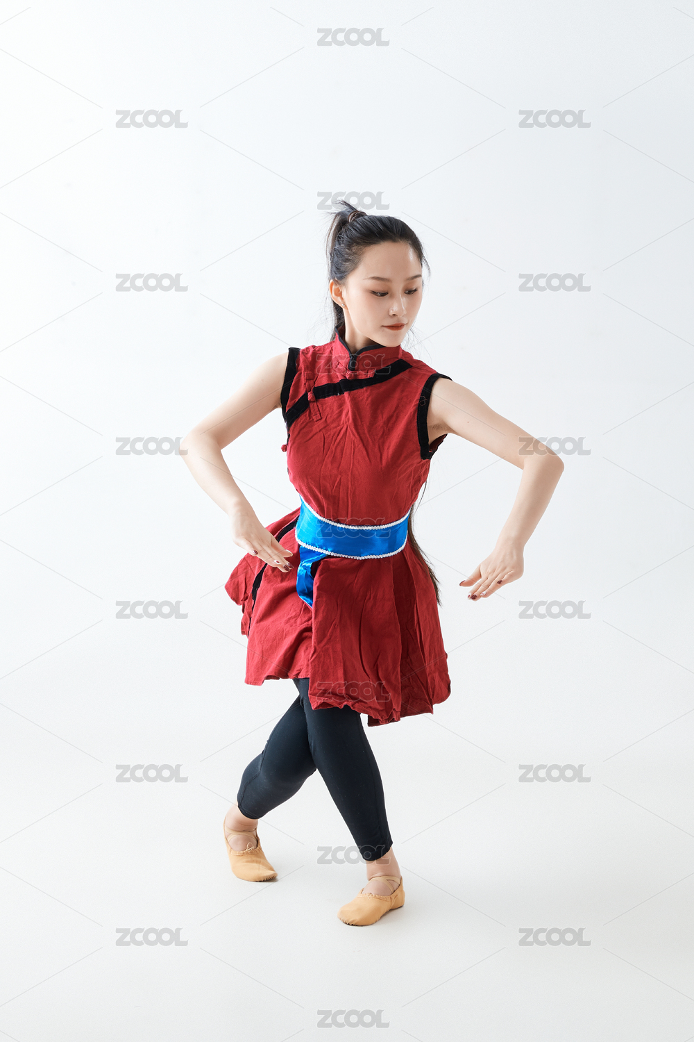 夕陽下草原蒙古大帳前穿蒙族服飾的美女