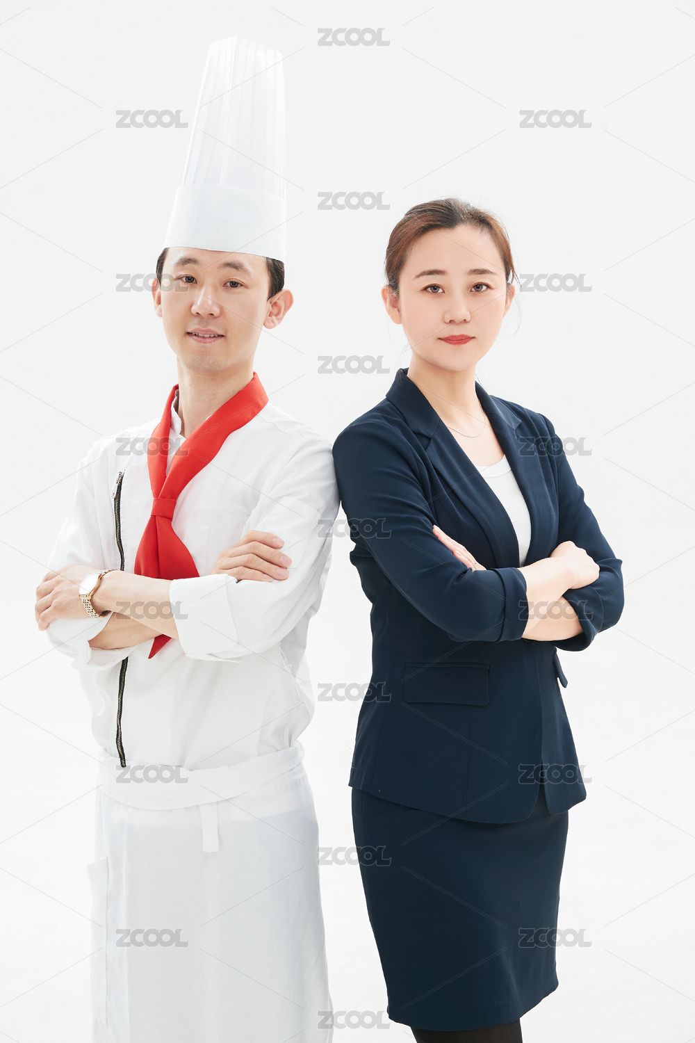 白色背景下的酒店廚師長與餐飲經(jīng)理
