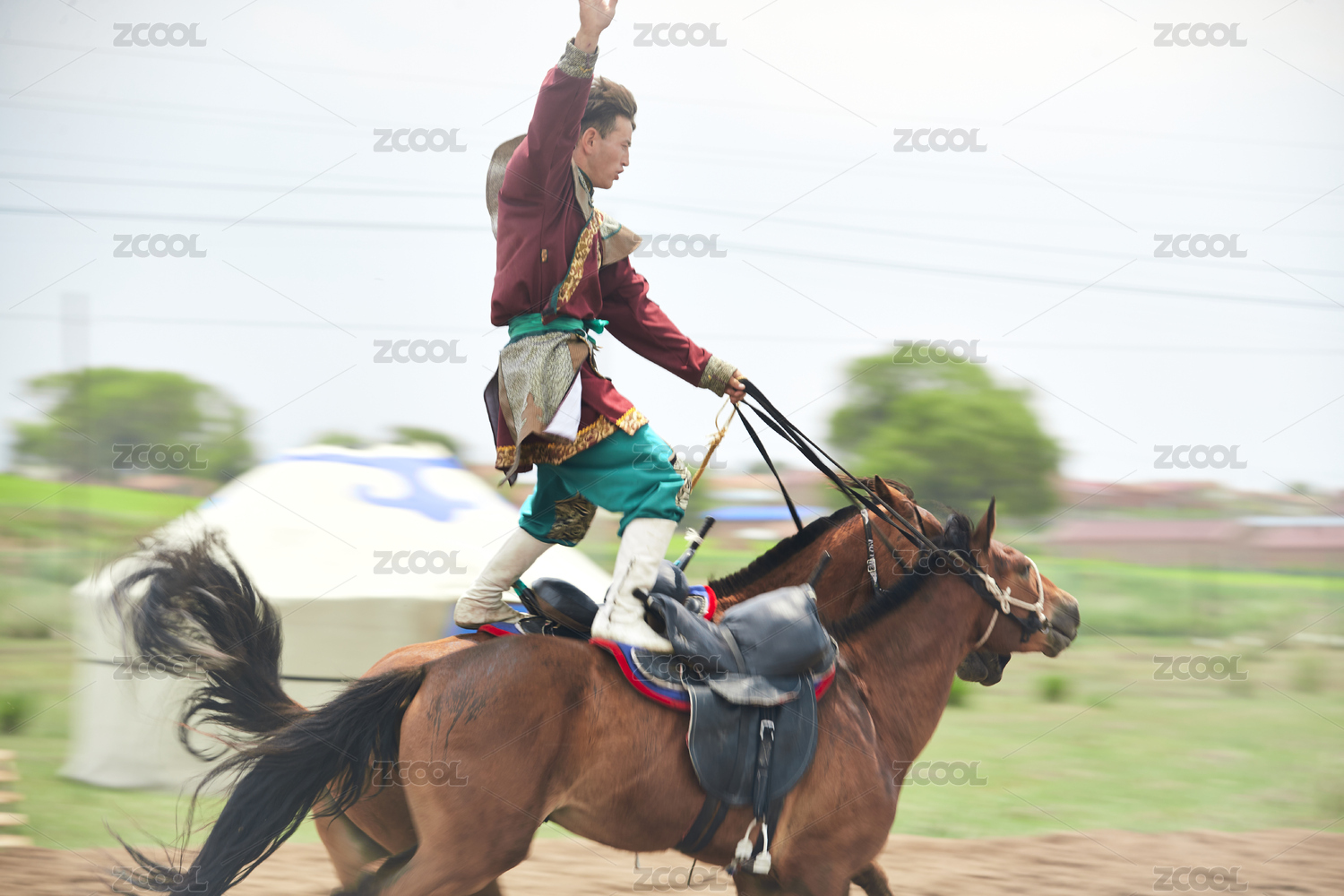 河北省沽源縣庫倫淖爾景區(qū)的蒙古馬術(shù)表演