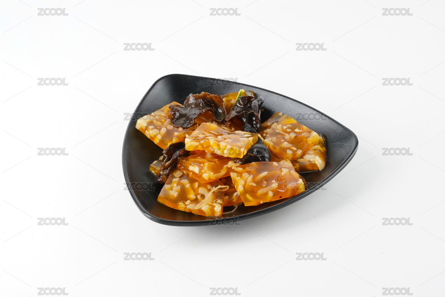 黑色盤子里的中式菜肴豬皮凍