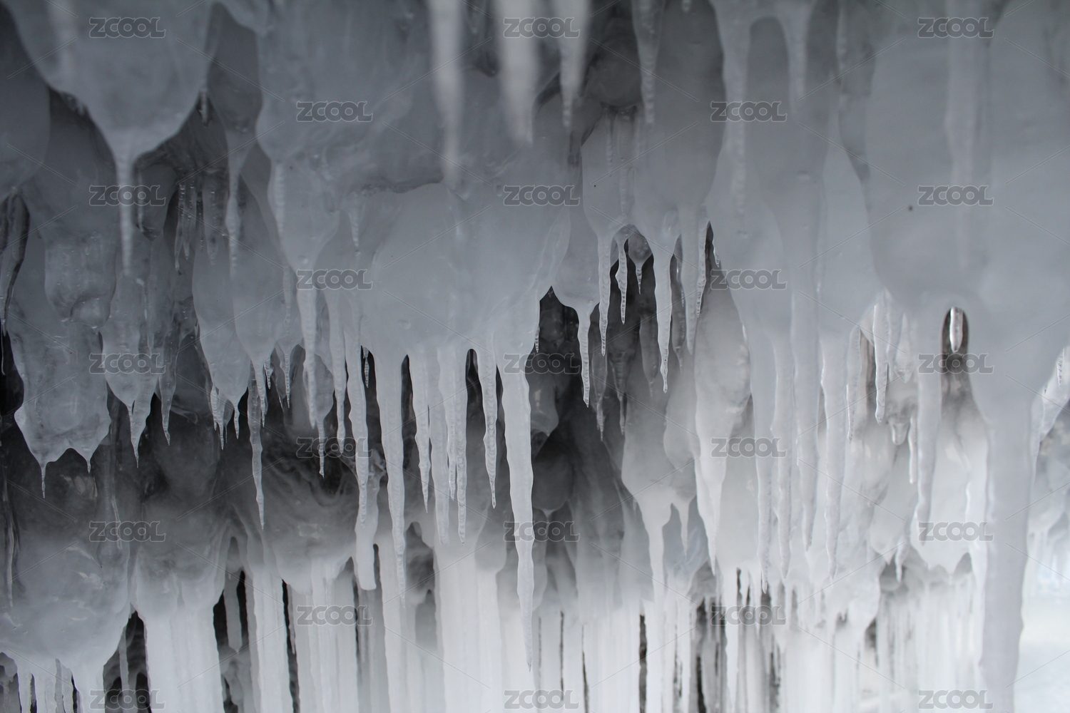 巖洞下的冰柱與雪花