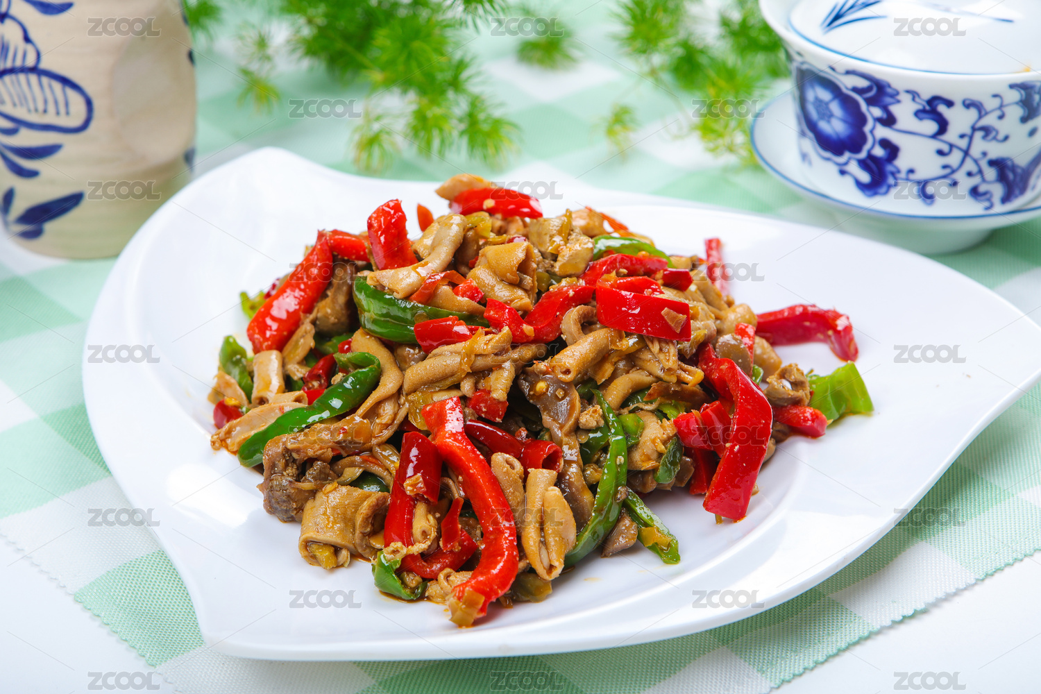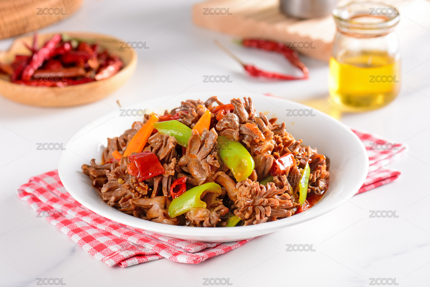 白背景一盤辣椒炒雞雜