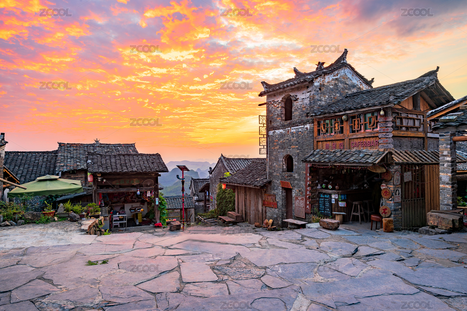 廣東清遠(yuǎn)連南縣南崗村千年瑤寨的暮光