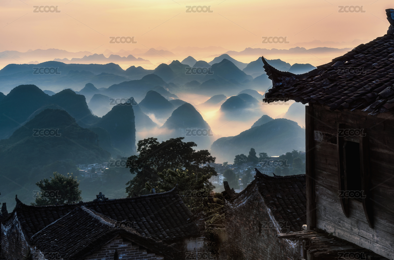 廣東清遠(yuǎn)連南縣南崗村千年瑤寨黎明藍(lán)調(diào)