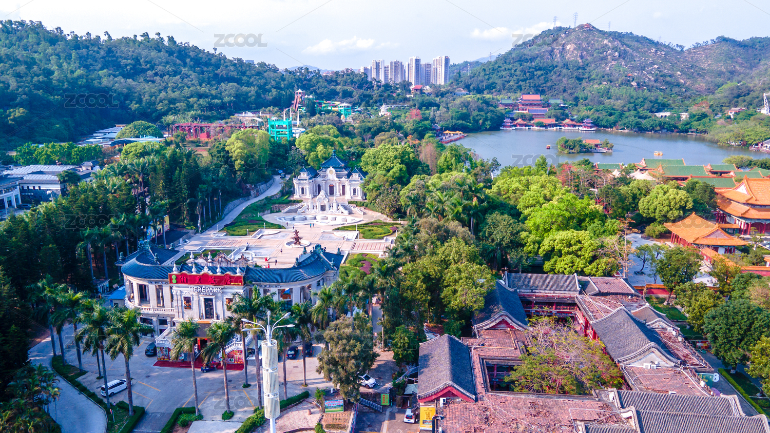 航拍珠海圓明新園西洋景區(qū)