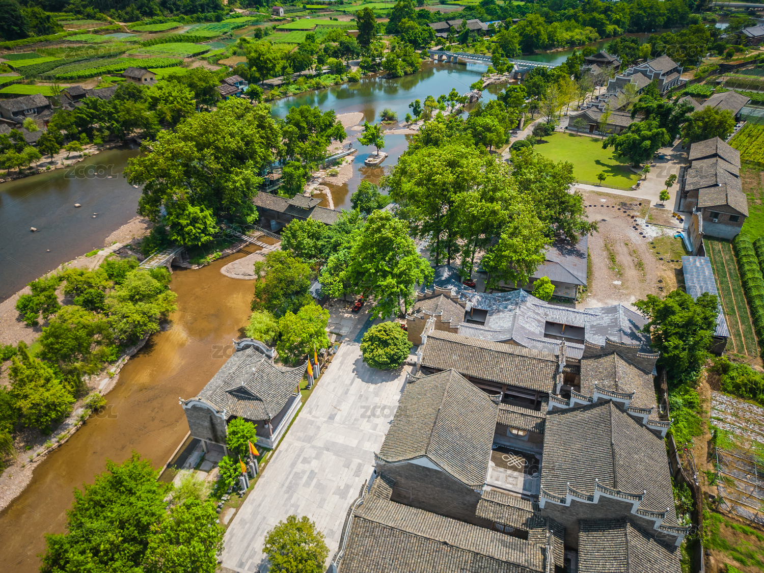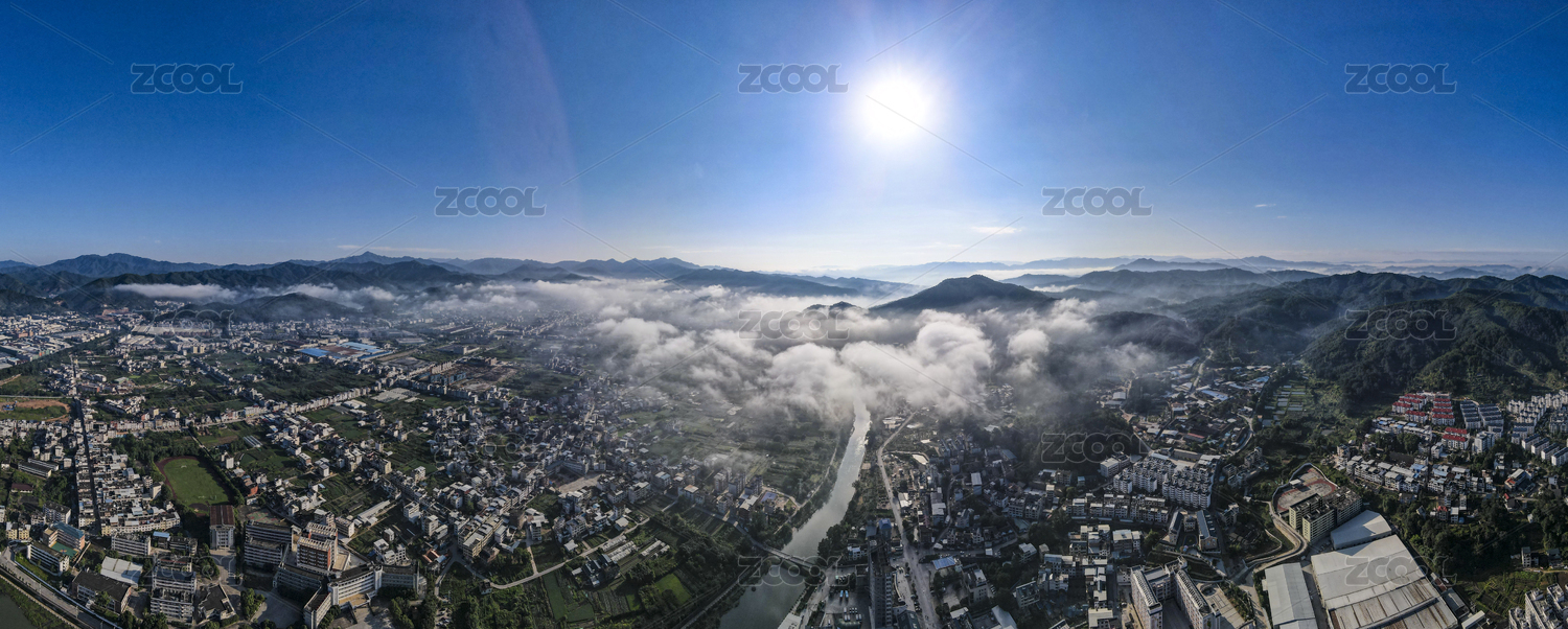 中國(guó)福建長(zhǎng)汀古城4A景區(qū)全景圖航拍