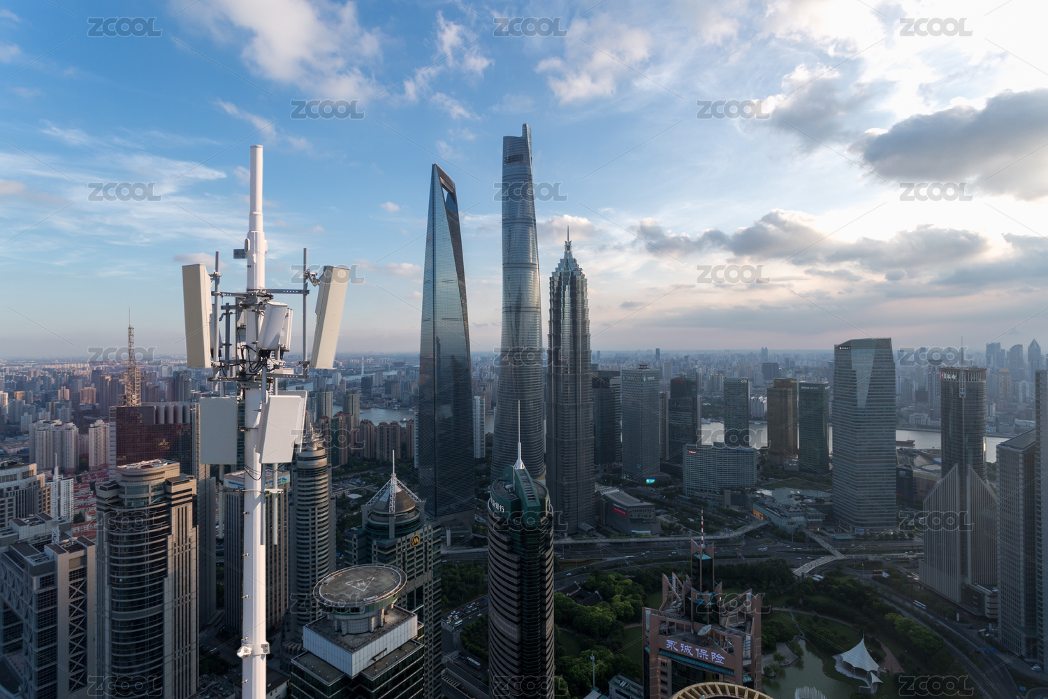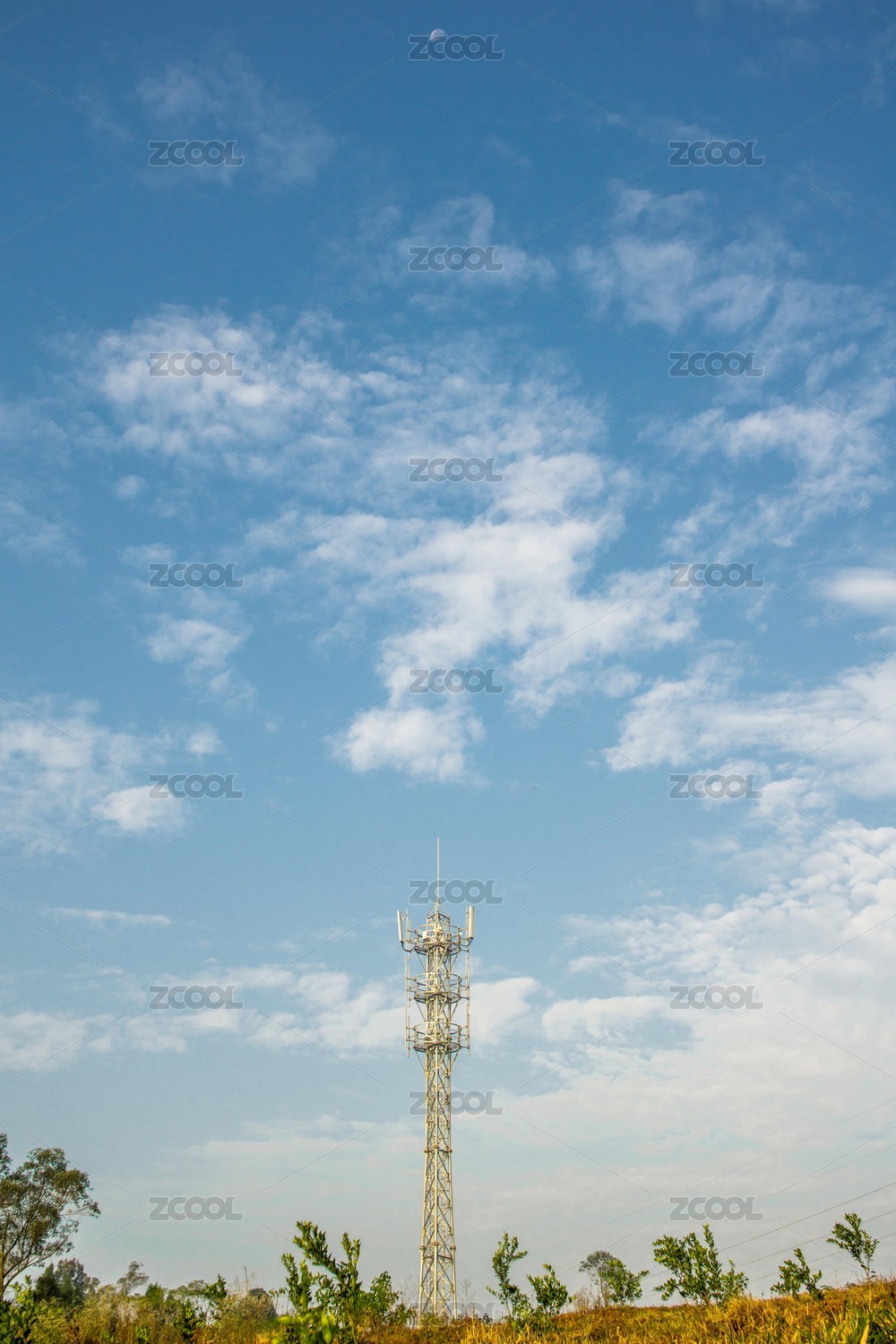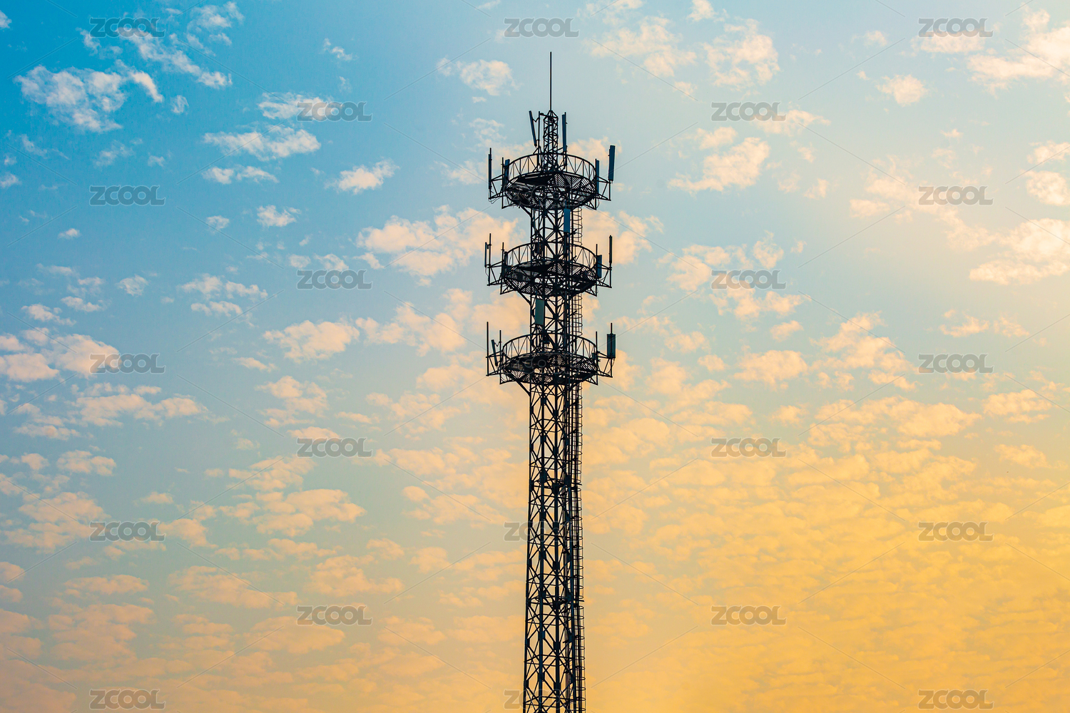 以朝霞為背景的無線通訊信號5G發(fā)射基站
