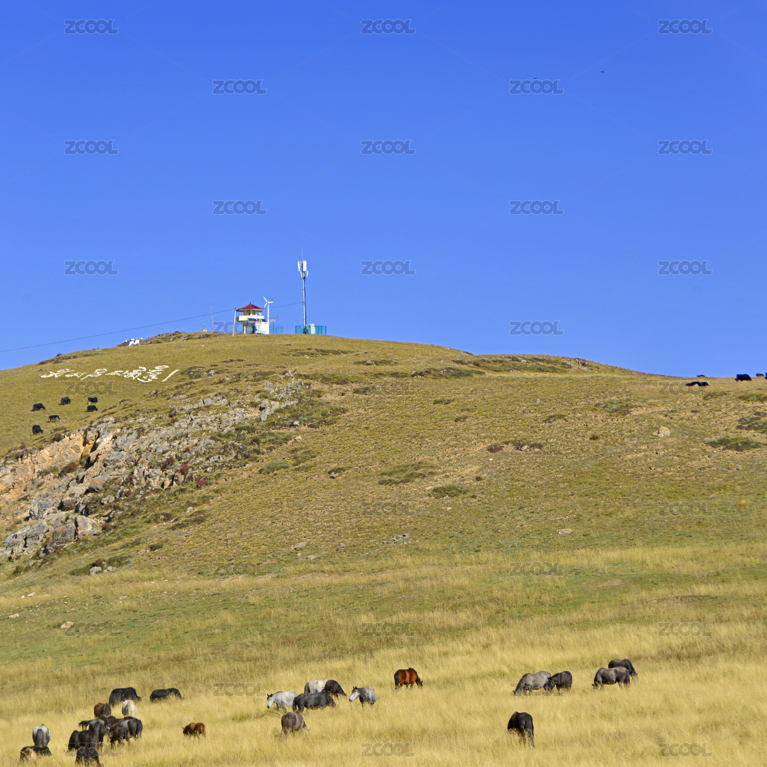 四川若爾蓋草原牧場的手機信號基站和風能發(fā)電機