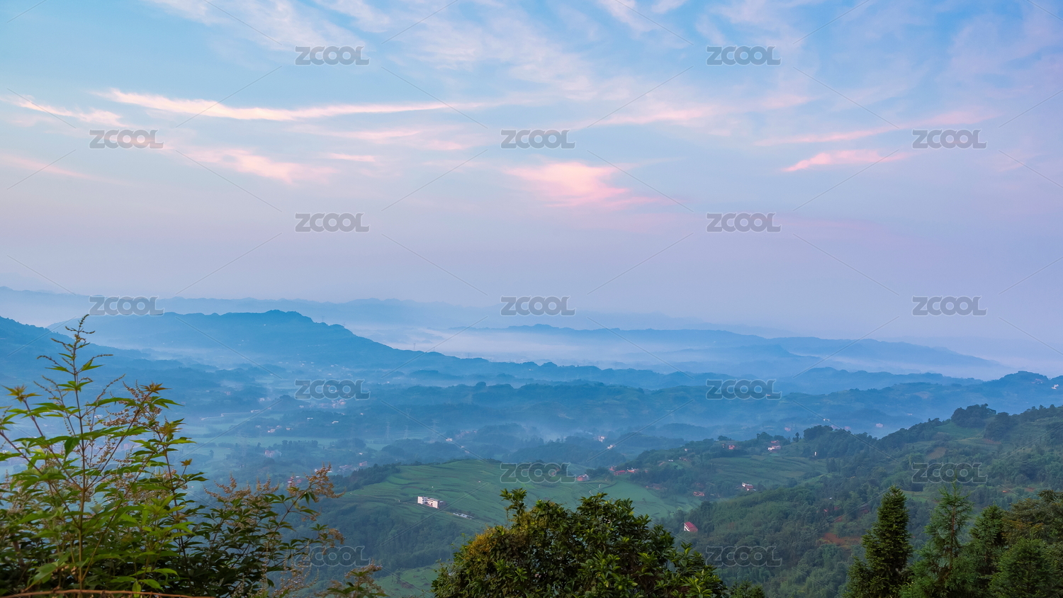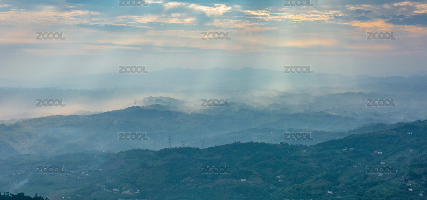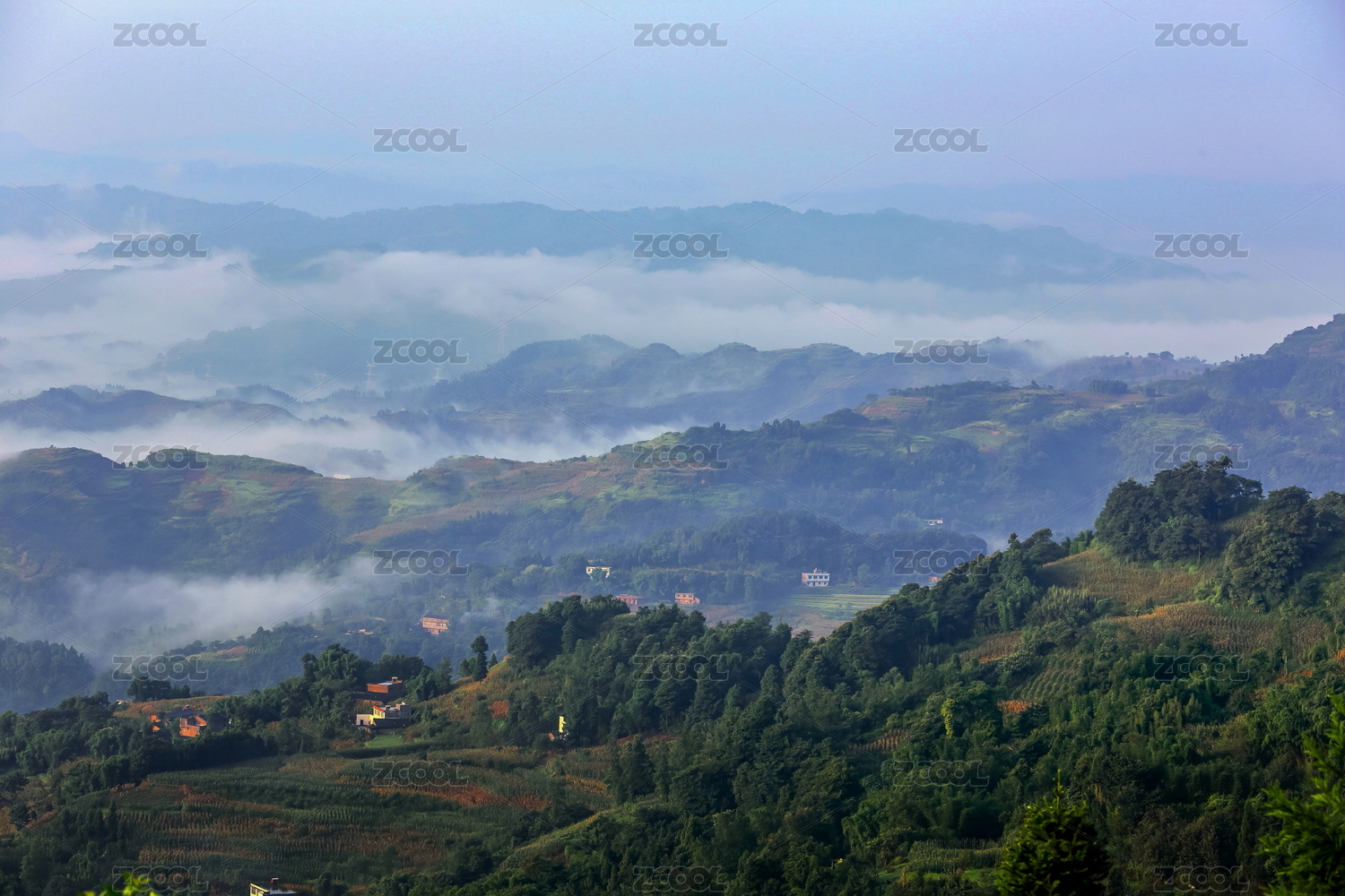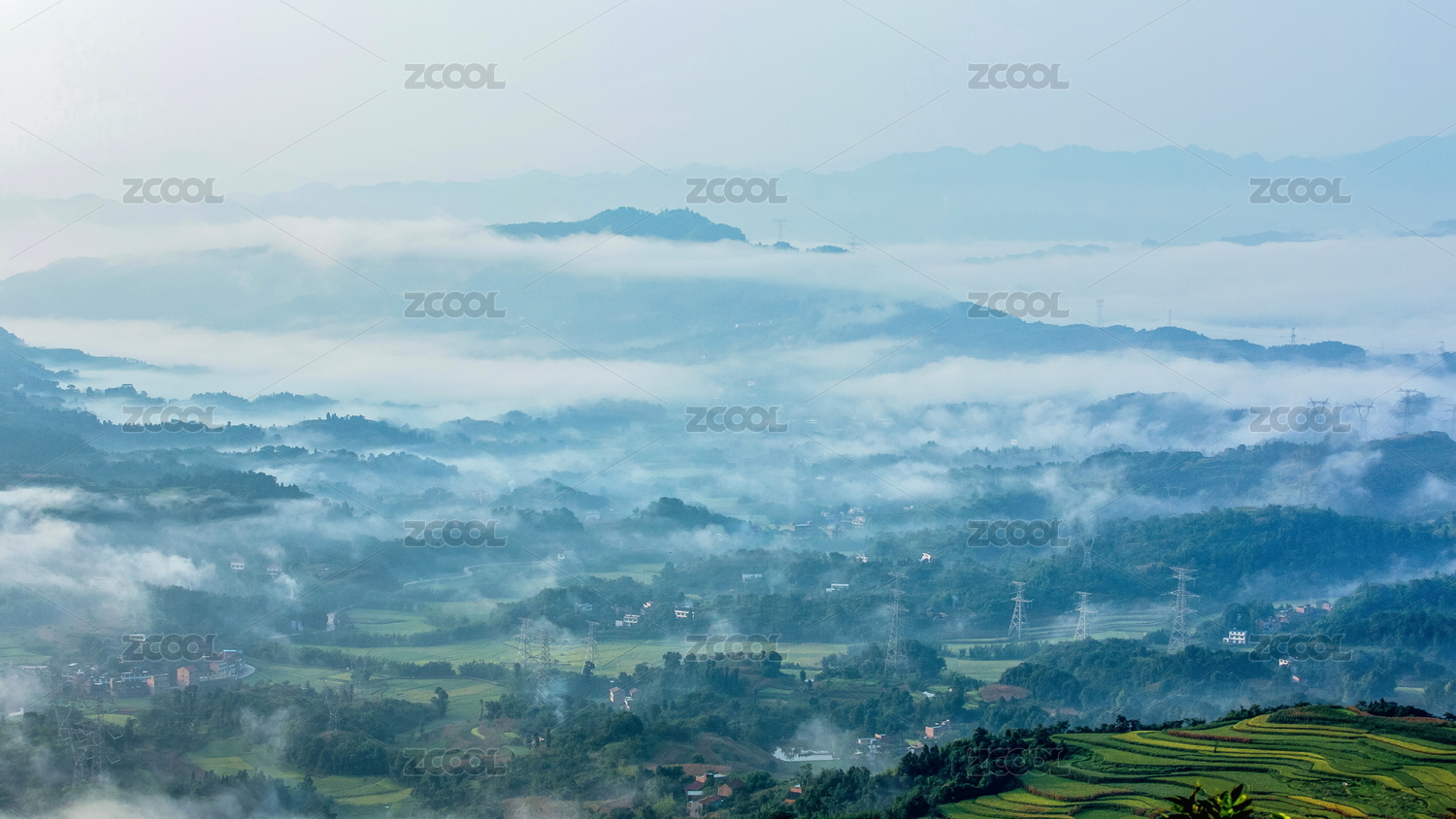 四川宜賓橫江古鎮(zhèn)晨霧繚繞高山溝壑美景