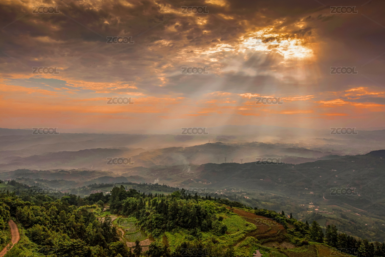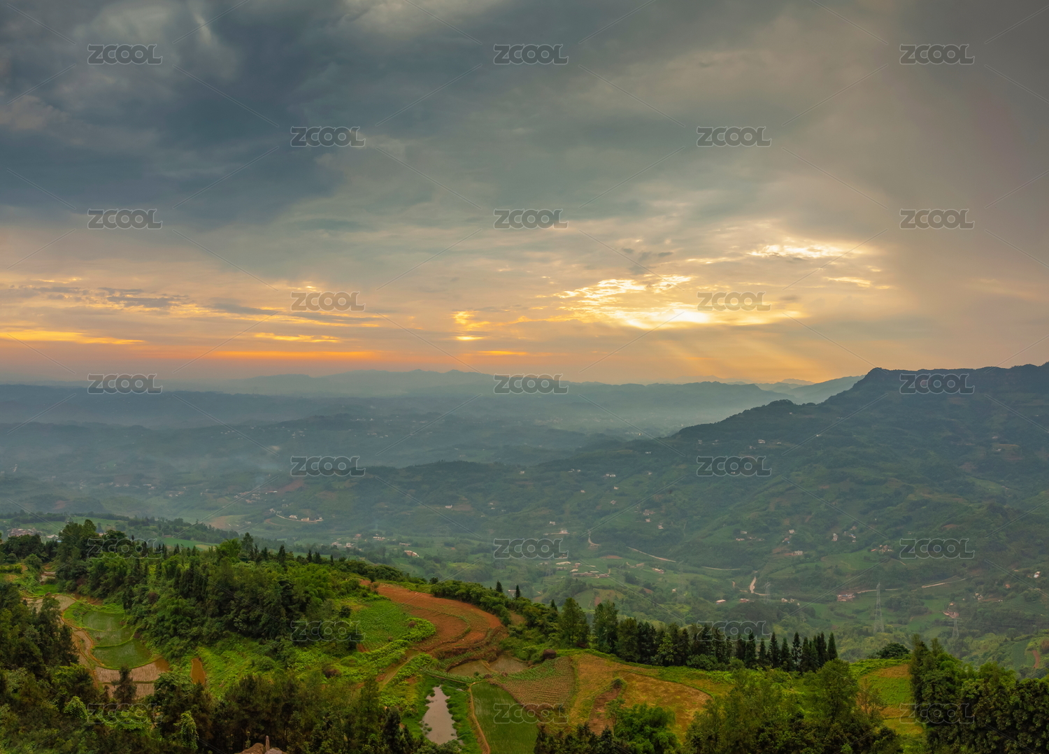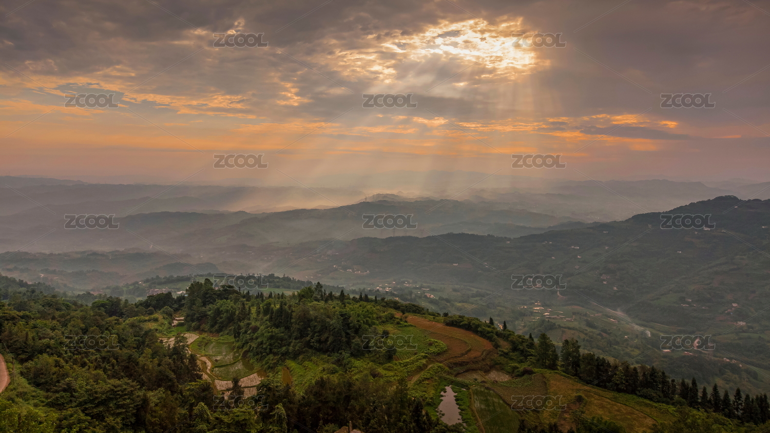 四川宜賓橫江古鎮(zhèn)晨霧繚繞高山溝壑美景