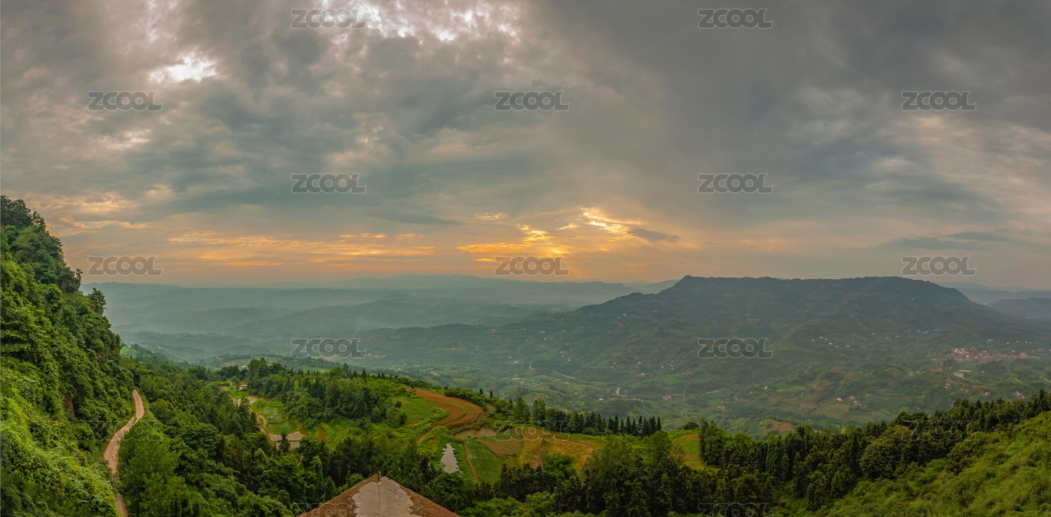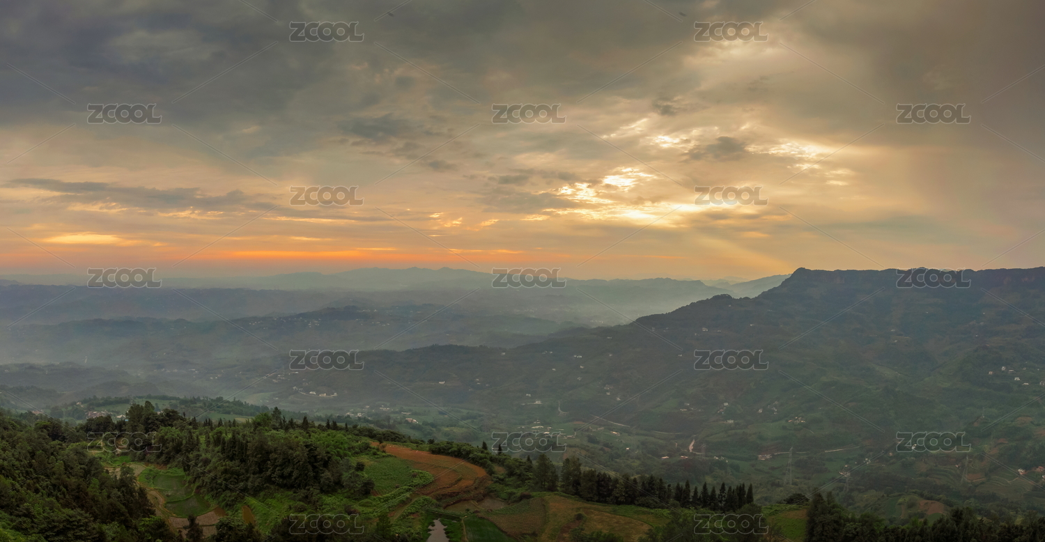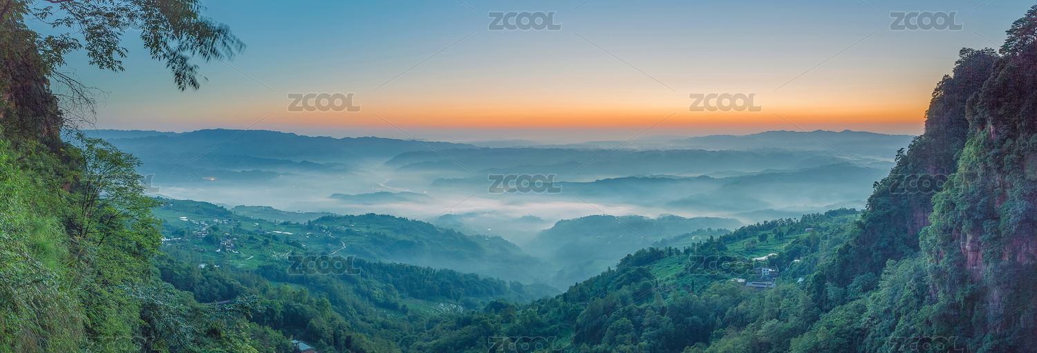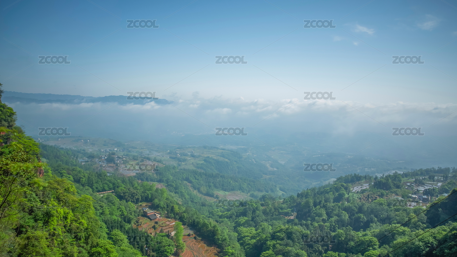 四川宜賓橫江古鎮(zhèn)高山溝壑云霧自然風景