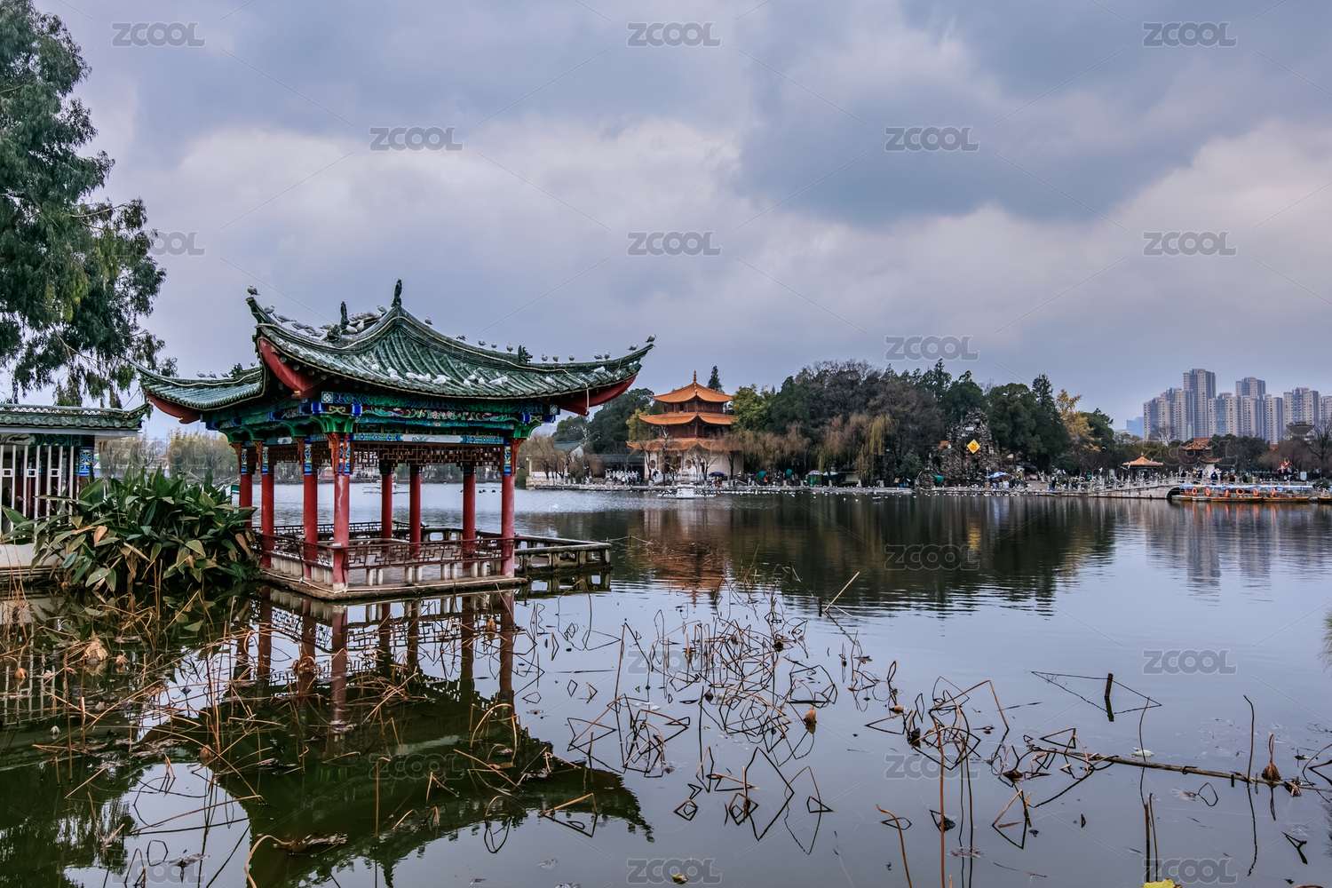 中國(guó)云南昆明大觀樓公園古建筑園林景觀